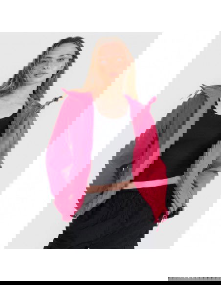 Women's transitional jacket with a hood - lightweight protection for everyday wear The 4f women's transitional jacket is designed for everyday activities in variable weather conditions. Equipped with a Neodry 5000/3000 membrane, it effectively protects against light rain and moderate wind while ensuring good breathability. A hydrophobic outer coating reduces moisture absorption, while taped critical seams in the hood and shoulders enhance protection in key areas. A mesh lining improves air circulation, promoting thermal comfort on warmer days. The integrated, adjustable hood and high collar provide protection from the cold and wind. Hook- and-loop adjustable cuffs allow for a personalized fit, and practical zip pockets provide secure storage for small items. Women's transitional jacket 4f – features: Neodry 5000/3000 membrane – protection against light rain and wind Hydrophobic coating – limits moisture absorption Critically taped seams – reinforced protection in the hood and shoulders Mesh lining – improved breathability and comfort Integrated adjustable hood for a better fit High collar – additional neck protection Velcro adjustable cuffs – individual fit 2 side pockets with zippers – safe storage of small items Internal zippered pocket – additional space for valuables One-way zipper with a wind flap – limits the penetration of cold Regular fit – comfortable fit and freedom of movement Composition : 100% polyester