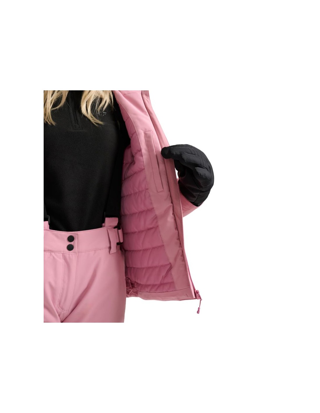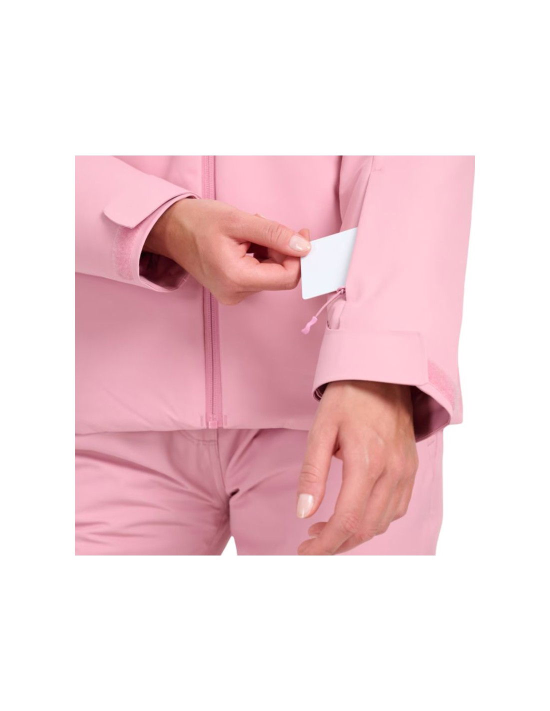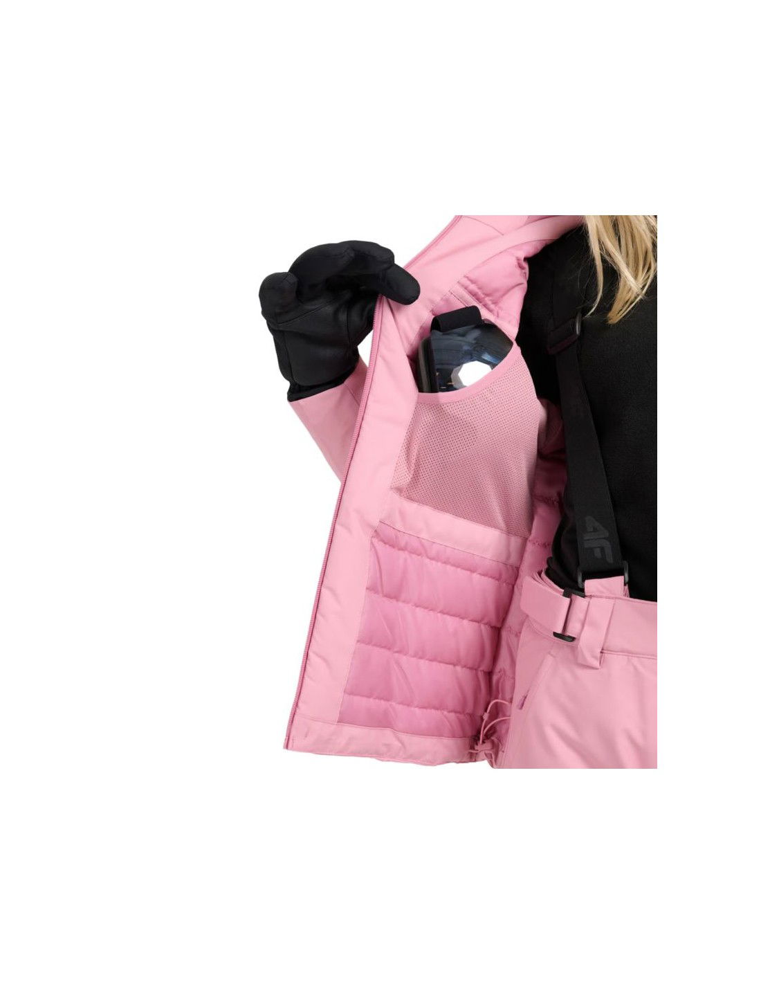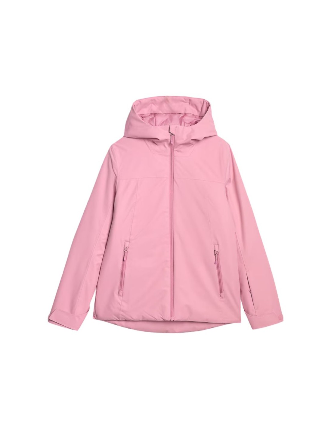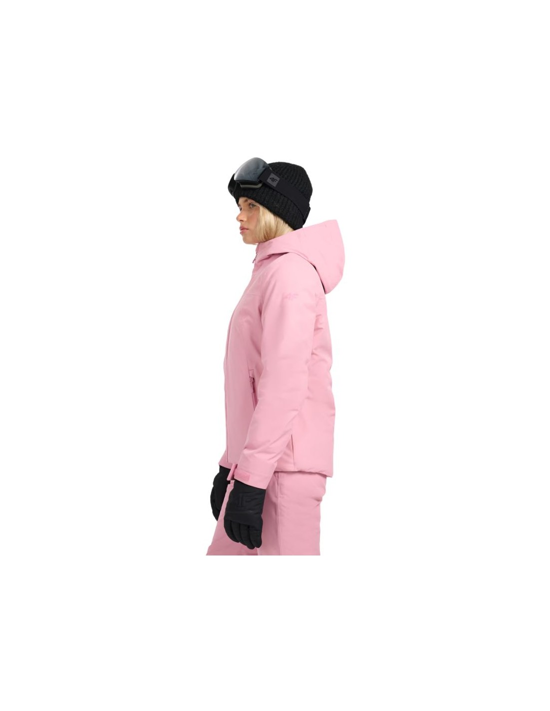 4F W Ski Jacket 4FWAW25TTJAF0954 Properties: Women's ski jacket 4F The 4F women's ski jacket is a model technologically prepared for low-intensity winter activities and everyday use. Main material: 100% polyester · Lining: 100% polyester · Filling: synthetic insulation, 100% polyester · Membrane: NeoDry 5000/3000 · Water resistance: 5000 mm H2O · Breathability: 3000 g/m2/24h · Regular cut comfortably fits the body · Standard hip-length cut · Jacket designed for colder days · Polyester quilted lining · The hydrophobic coating of the outer material limits the absorption of moisture. Critical seams taped in hood and shoulders · Integrated hood with contoured visor and volume and depth adjustment · High collar · Velcro adjustable cuffs · 2 side pockets with zipper closure · Internal open mesh goggle pocket · Internal Velcro pocket · Ski pass pocket on the left arm · One-way main zipper with internal wind flap · Tunnel drawcord with stoppers at the bottom hem adjustment · Polyester insulation ensures optimal thermal comfort. NeoDry 5000/3000 membrane protects against light rain or snow.