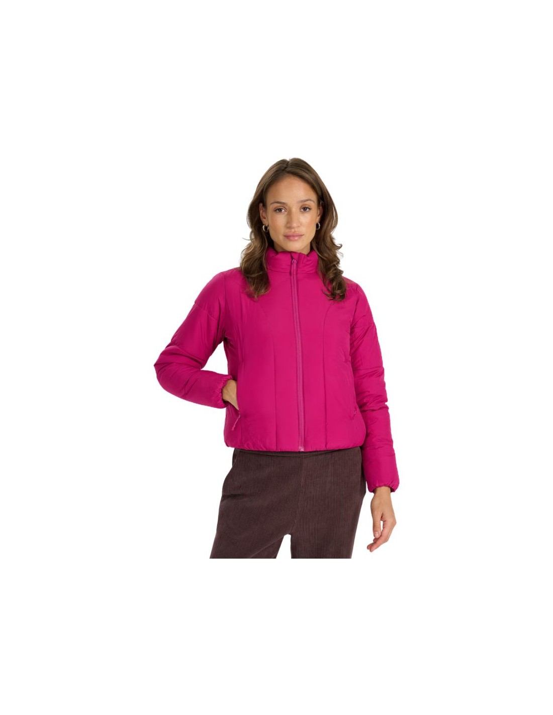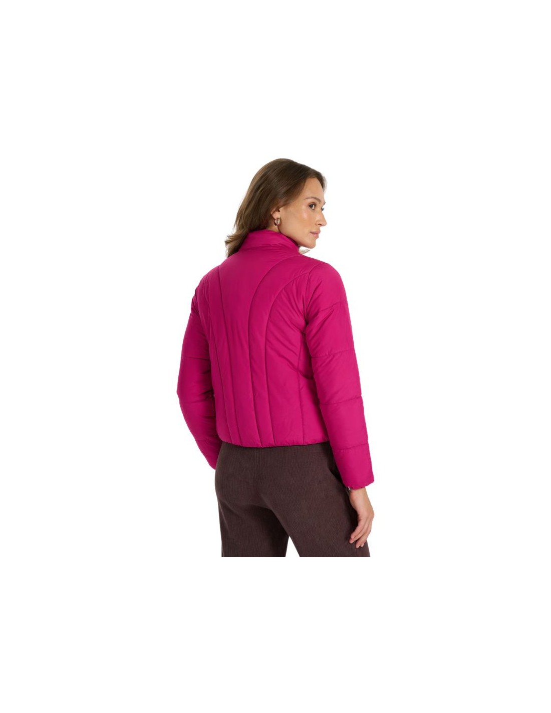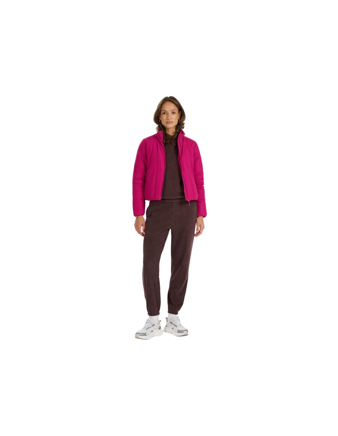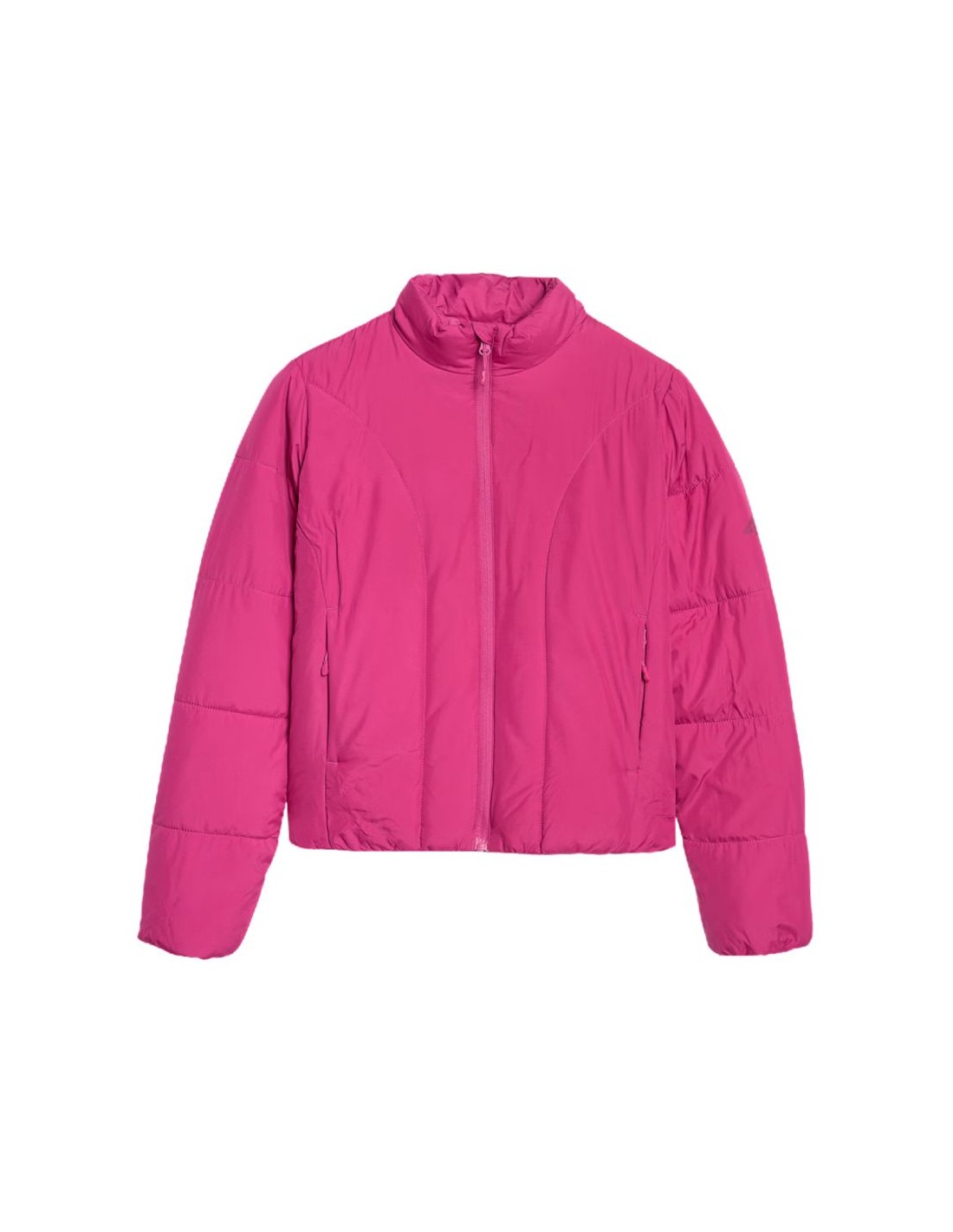 Women's down jacket 4F F0705 fuchsia 4FRAW25TDJAF0705 55S The 4F women's jacket is perfect for everyday and sports activities on warmer or cloudy days during the transition period. Additionally, the jacket can act as an insulating layer under a jacket with a waterproof membrane. Technical data: Main material: 100% polyester Lining: 100% polyester Filling: 100% polyester · Slim cut - adapts to the silhouette, emphasizing the sporty character Hip-length - standard cut suitable for everyday wear · Lightweight transitional jacket - perfect for warmer, cloudy days · Hydrophobic coating - limits moisture absorption and protects against light rain · Synthetic filling - provides thermal insulation even in humid conditions · Rip stop material - increased resistance to tearing and mechanical damage · Low stand-up collar - additional neck protection against cold · Rubber-trimmed cuffs - better fit and reduced wind penetration 2 side pockets with zippers - safe storage of small items One-way main zipper with a wind flap - protection against heat loss