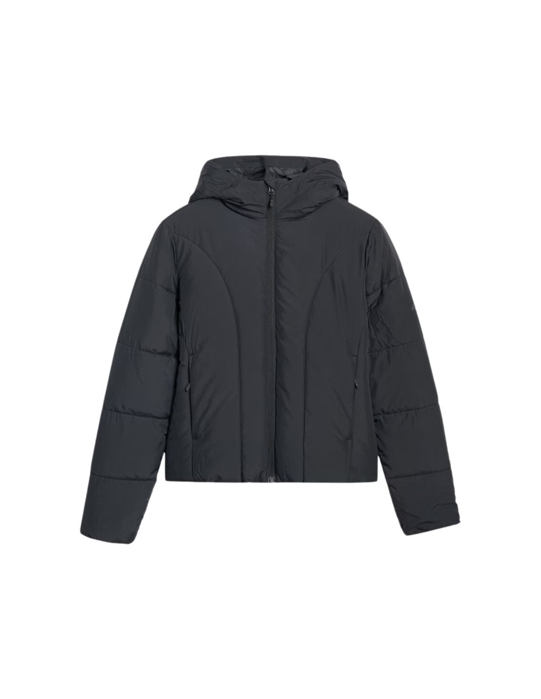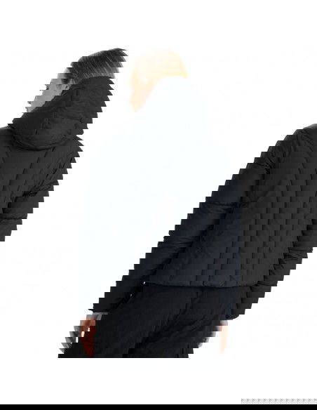 Women's down jacket 4F F0706 deep black 4FRAW25TDJAF0706 20S The 4F women's jacket is perfect for everyday and sports activities on warmer or cloudy days during the transition period. Additionally, the jacket can act as an insulating layer under a jacket with a waterproof membrane. Technical data: Main material: 100% polyester Lining: 100% polyester Filling: 100% polyester · Slim cut - adapts to the silhouette, emphasizing the sporty character Hip-length - standard cut suitable for everyday wear · Lightweight transitional jacket - perfect for warmer, cloudy days · Hydrophobic coating - limits moisture absorption and protects against light rain · Synthetic filling - provides thermal insulation even in humid conditions · Rip stop material - increased resistance to tearing and mechanical damage Stand-up collar - additional neck protection against cold Integrated hood without adjustment - permanent head protection against cold and wind · Rubber-trimmed cuffs - better fit and reduced wind penetration 2 side pockets with zippers - safe storage of small items One-way main zipper with a wind flap - protection against heat loss