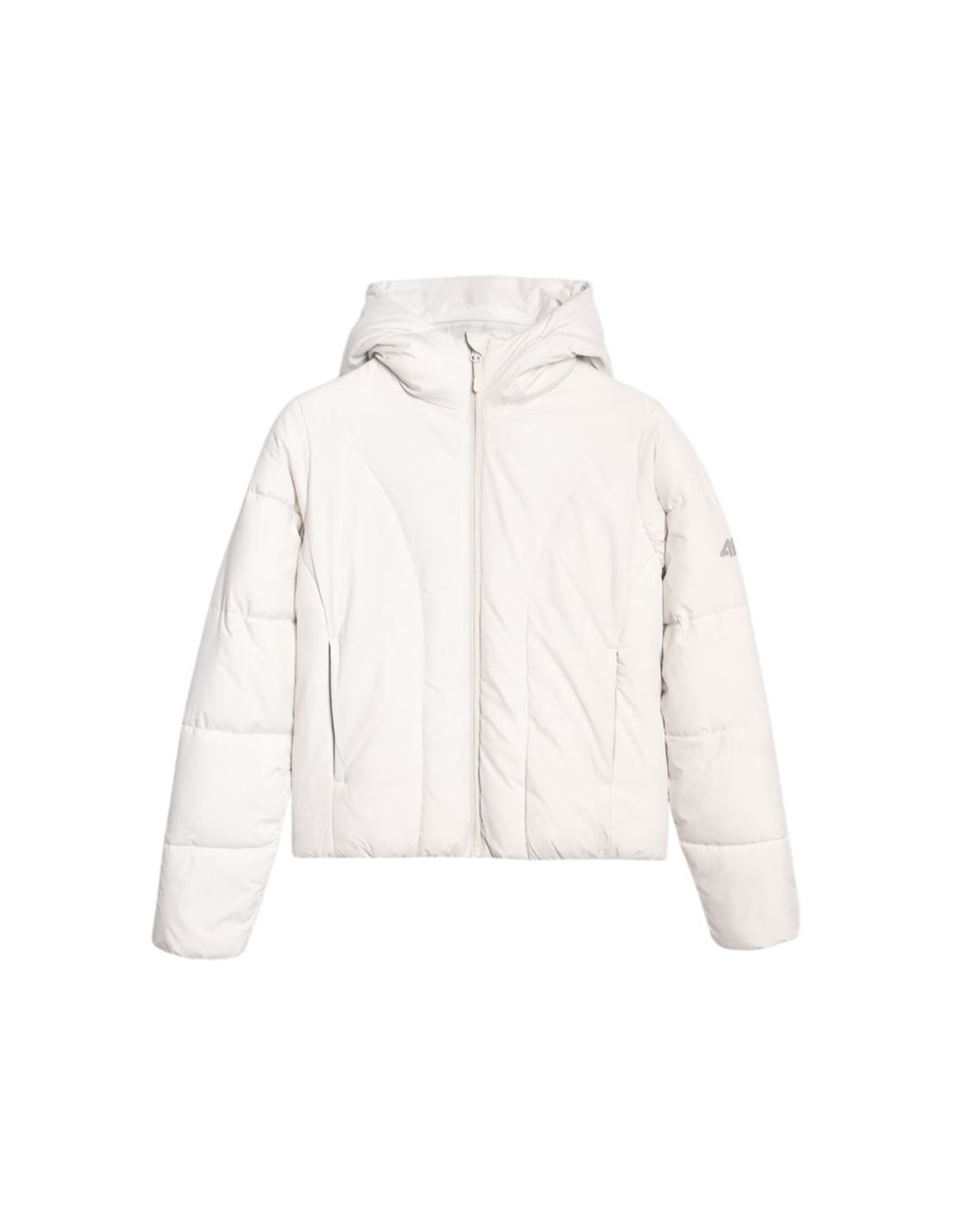 Women's down jacket 4F F0706 cool light gray 4FRAW25TDJAF0706 27S The 4F women's jacket is perfect for everyday and sports activities on warmer or cloudy days during the transition period. Additionally, the jacket can act as an insulating layer under a jacket with a waterproof membrane. Technical data: Main material: 100% polyester Lining: 100% polyester Filling: 100% polyester · Slim cut - adapts to the silhouette, emphasizing the sporty character Hip-length - standard cut suitable for everyday wear · Lightweight transitional jacket - perfect for warmer, cloudy days · Hydrophobic coating - limits moisture absorption and protects against light rain · Synthetic filling - provides thermal insulation even in humid conditions · Rip stop material - increased resistance to tearing and mechanical damage Stand-up collar - additional neck protection against cold Integrated hood without adjustment - permanent head protection against cold and wind · Rubber-trimmed cuffs - better fit and reduced wind penetration 2 side pockets with zippers - safe storage of small items One-way main zipper with a wind flap - protection against heat loss