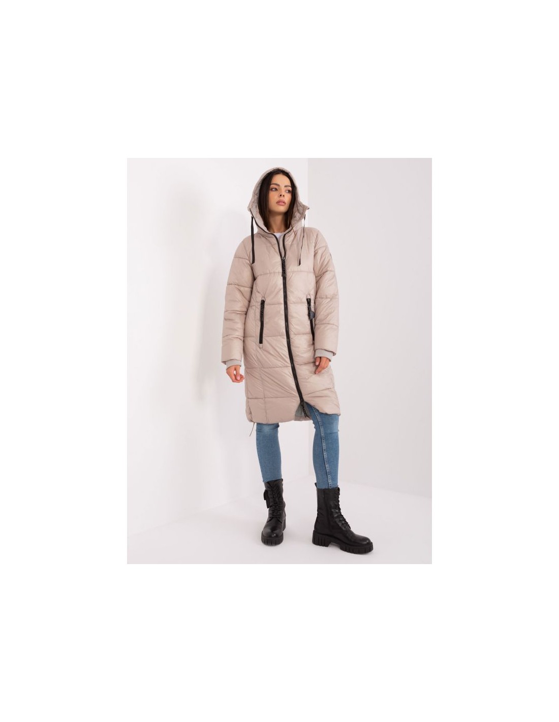 Women's beige quilted winter jacket SUBLEVEL kneelength D50048X44518B3