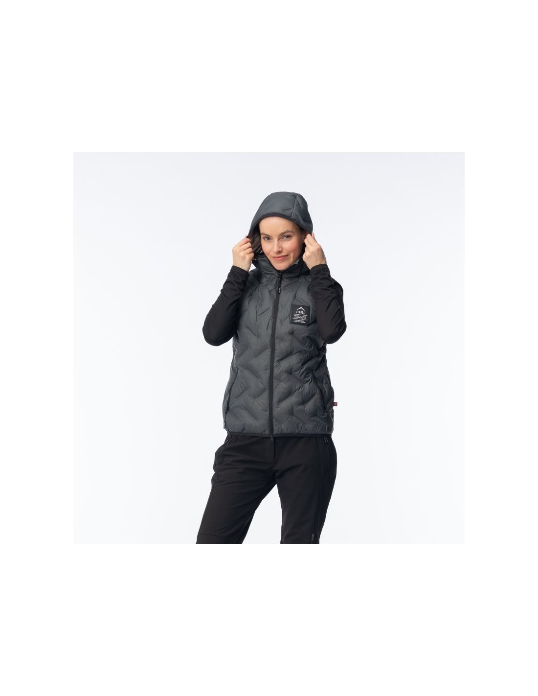 Elbrus Quilted Huel Vest Primaloft W Properties: The practical HUEL VEST PRIMALOFT WO'S will perfectly complement your wardrobe. The women's quilted HUEL VEST PRIMALOFT® WO'S by Elbrus is made with Primaloft® Silver Insulation Thermoplume® synthetic fill with Cross Core™ technology . This technology enhances thermal insulation on cold days. Its construction is similar to down, yet it is lightweight and more compressible. Welded panels with synthetic insulation prevent it from shifting. This model features an integrated, insulated hood to protect you from gusts of wind. Two side pockets provide storage for small essentials. A heat-reflective interior finish adds an additional benefit to the HUEL VEST PRIMALOFT® WO'S. Primaloft® is a world-renowned synthetic insulation. You'll find it in products from Elbrus, Fitanu, and other well-known outdoor brands. It has excellent thermal retention properties and doesn't lose these properties when exposed to moisture. Two-way zipper Two side pockets Integrated hood Primaloft® Silver Insulation Thermoplume® with Cross Core™ technology Welded panels Elasticated waistband Inner pocket Reflective elements Outer material: 100% nylon Lining: 100% nylon Filling: Primaloft® Silver Insulation, 100% polyester, 95 g