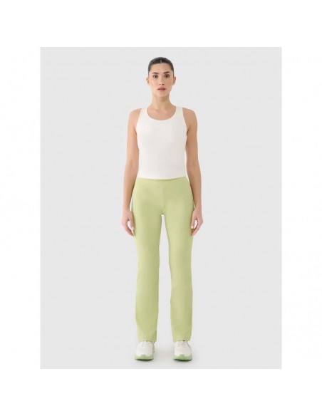 4F women's training pants are the perfect choice for active women looking for clothing that combines comfort , support , and style . Thanks to the use of quick-drying , stretchy materials and functional details, these pants will provide you with comfort and complete freedom of movement, allowing you to focus on the effectiveness of your workout. Product Features: Regular fit : The trousers have a classic cut that comfortably fits the body, guaranteeing full freedom of movement . Flared Legs : Stylish, flared leg design adds elegance while ensuring comfort during training. Vertical Ribs : Knitwear with characteristic ribs gives the pants a unique look and makes the material stretchy and soft to the touch . Synthetic Material : Made of synthetic material , the pants are durable and easy to care for, which means they will last for a long time. Elastane (25%) : Thanks to the addition of elastane , the trousers fit perfectly to the body, offering stretchability and comfort. 4FDry technology : Quick-drying fibers in 4FDry technology wick moisture away from the body, keeping you feeling fresh throughout your workout. No Pockets : The pants have a clean design with no pockets, which adds to their elegant look. Style, Comfort and Performance in One 4F women's training pants are a combination of style and comfort , perfect for both intense workouts and everyday activities. Their quick-drying fabric , stretchy material , and stretchy cut provide comfort and support at every stage of your workout, while the fashionable flared cut adds character to any outfit. Perfect for every workout and everyday outings – choose 4F training pants and feel the difference!