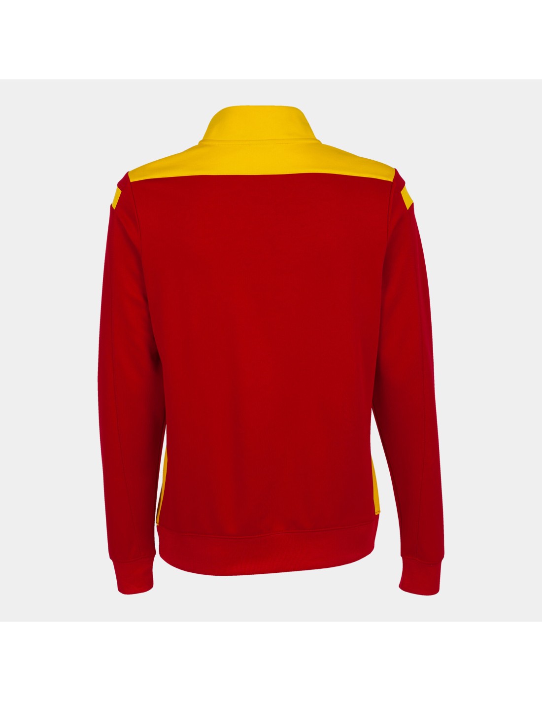 Sweatshirt with a high collar and half-length zipper. Ribbed cuffs and hem. Design with colorful cuts. J logo patch