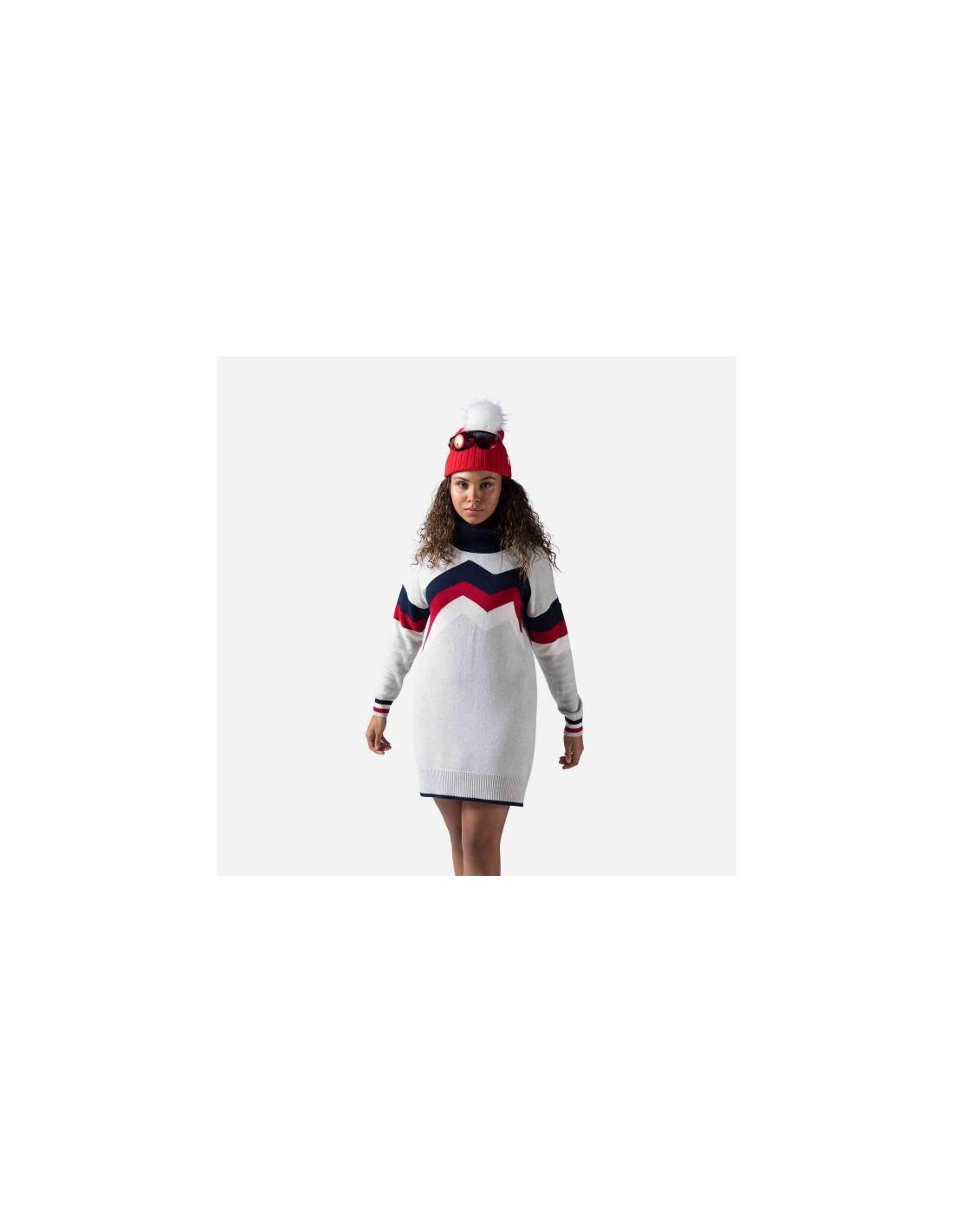 Share your love of the mountains and all their magic with the Rossignol Women's Mountain Knit Dress. Its design is deeply rooted in Rossignol's Alpine heritage, with mountain-inspired stripes and colors inspired by the French flag. Whether in the French Alps or your own corner of the world, the merino and cashmere blend is luxuriously soft and warm. Classic cut Fitted cut inspired by sporty style. Merino and cashmere blend An incredibly soft blend of merino wool and cashmere provides natural warmth and a luxurious feel.