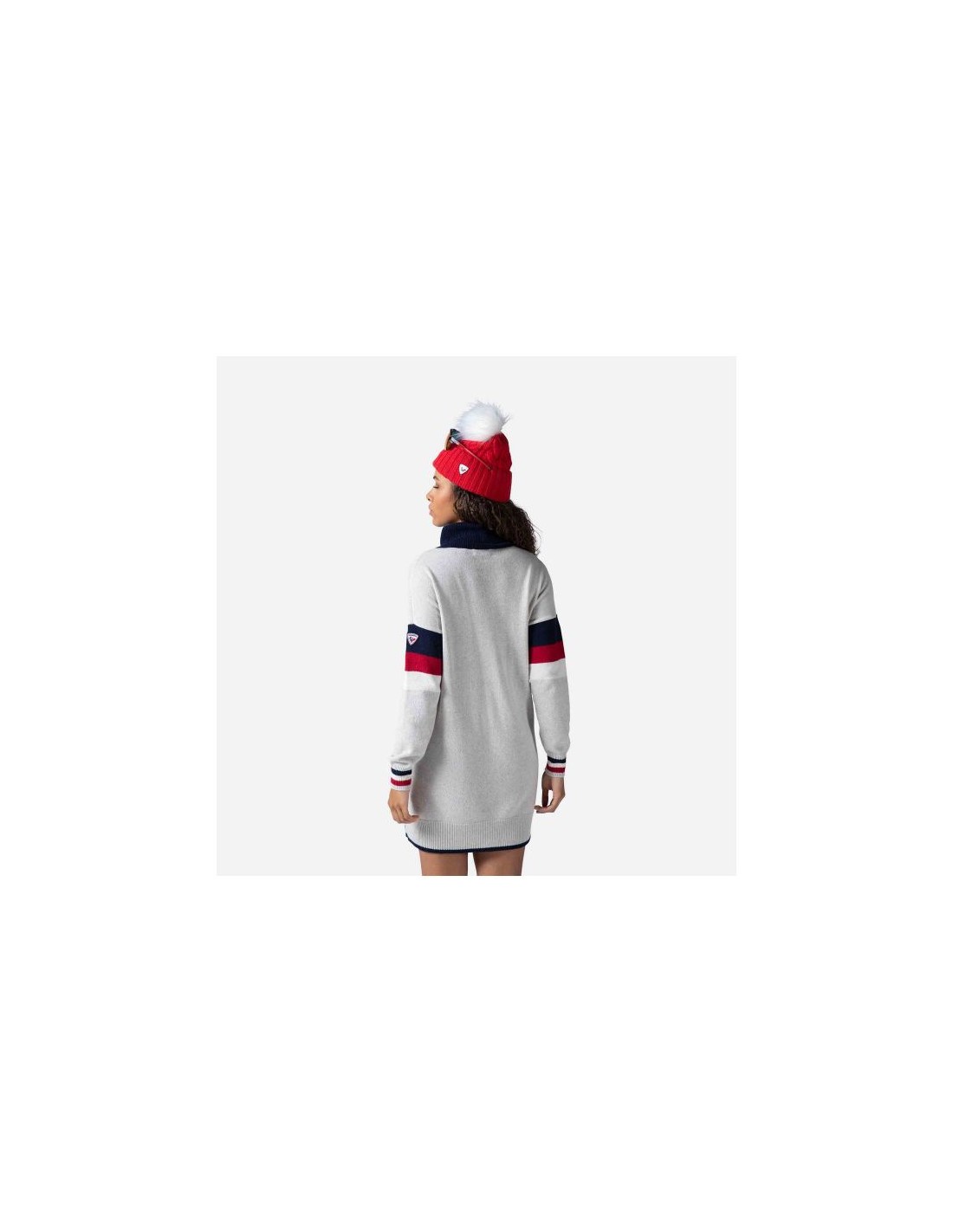 Stay cozy and stylish with the Rossignol W Mountain Knit Dress Sweater in Gray, perfect for both mountain adventures and casual outings.
