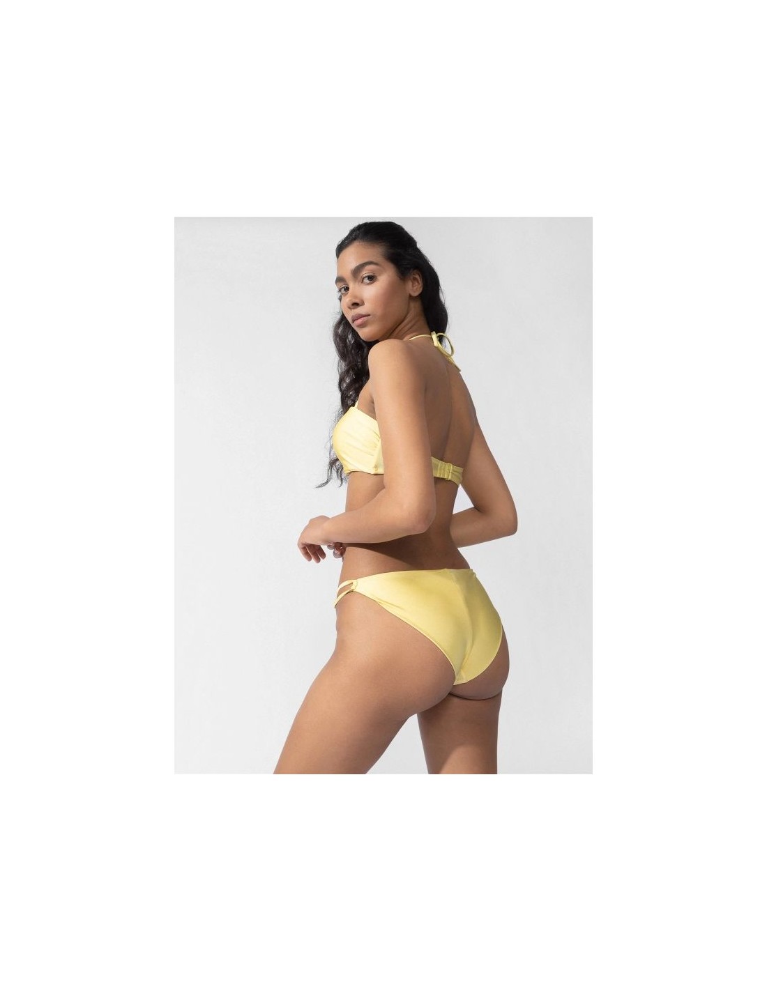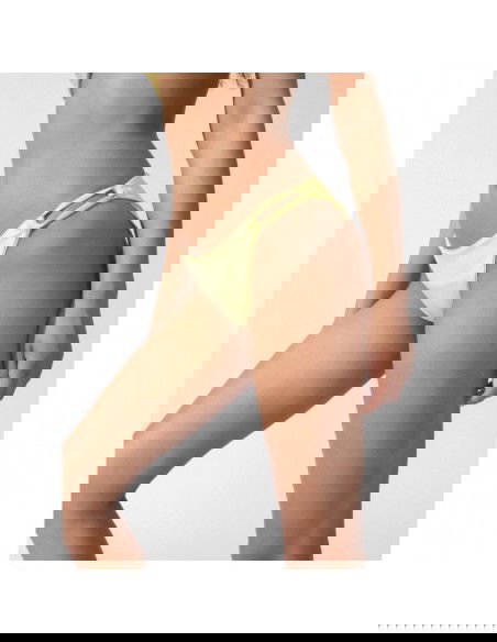 Women's swim briefs. Made from quick-drying, slightly shiny fabric. The classic cut will accentuate your figure, and the elastic fibers ensure a perfect fit. cut: briefs, smooth, quick-drying material, decorative straps on the hips, elastic material adapts to the body, soft-touch lining provides comfort and coverage. Main material: Polyamide 80%, Elastane 20% Lining: Polyester 92%, Elastane 8%