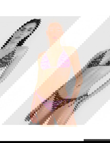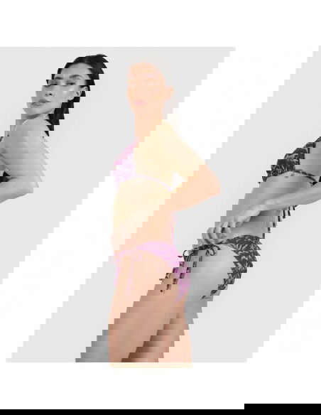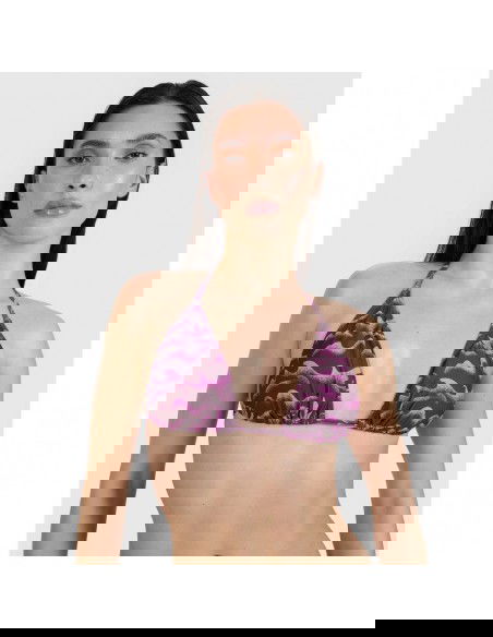 Women's Halter Bikini Top – Style and Comfort for Summer This women's halter bikini top combines feminine style, comfort, and functionality—ideal for the beach, pool , and summer activities. It provides comfort and freedom of movement , perfect for both swimming and relaxing in the sun. Made of durable synthetic material with 15% elastane , the bikini top fits perfectly to the body, is stretchy , easy to care for and retains its shape even after many uses. The halter bikini features triangular, lightly padded cups that gently shape the bust. Ties at the neck and back allow for a personalized fit, while removable pads allow you to adjust the level of support and cup shape. The striking allover print gives the whole thing a modern, fashionable look – a perfect choice for women who want to stand out. Product features – women's bikini top (halter): Stylish halter bikini cut – accentuates the figure and ensures comfort Sizes XS–XL – to fit a variety of body types 15% elastane – elastic and comfortable to wear Triangular cups with light padding - natural bust shaping Binding at the neck and back – adjustable circumference and body fit Removable cup inserts – adjustable support Allover print – a fashionable pattern covering the entire surface Quick-drying fibers – effective moisture wicking