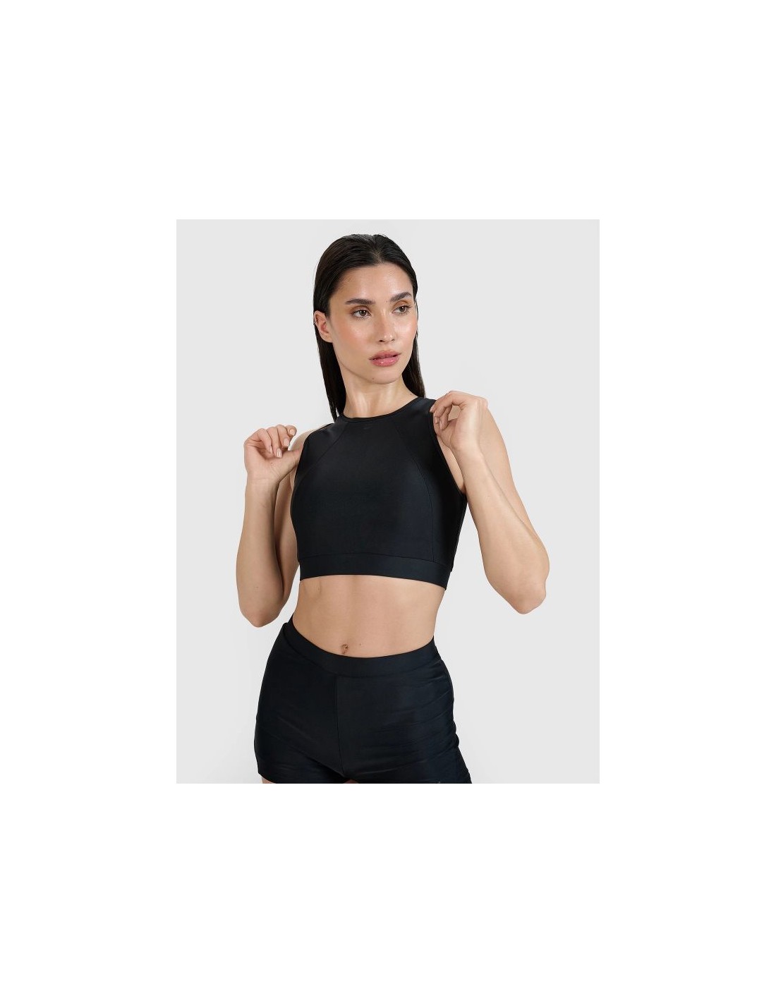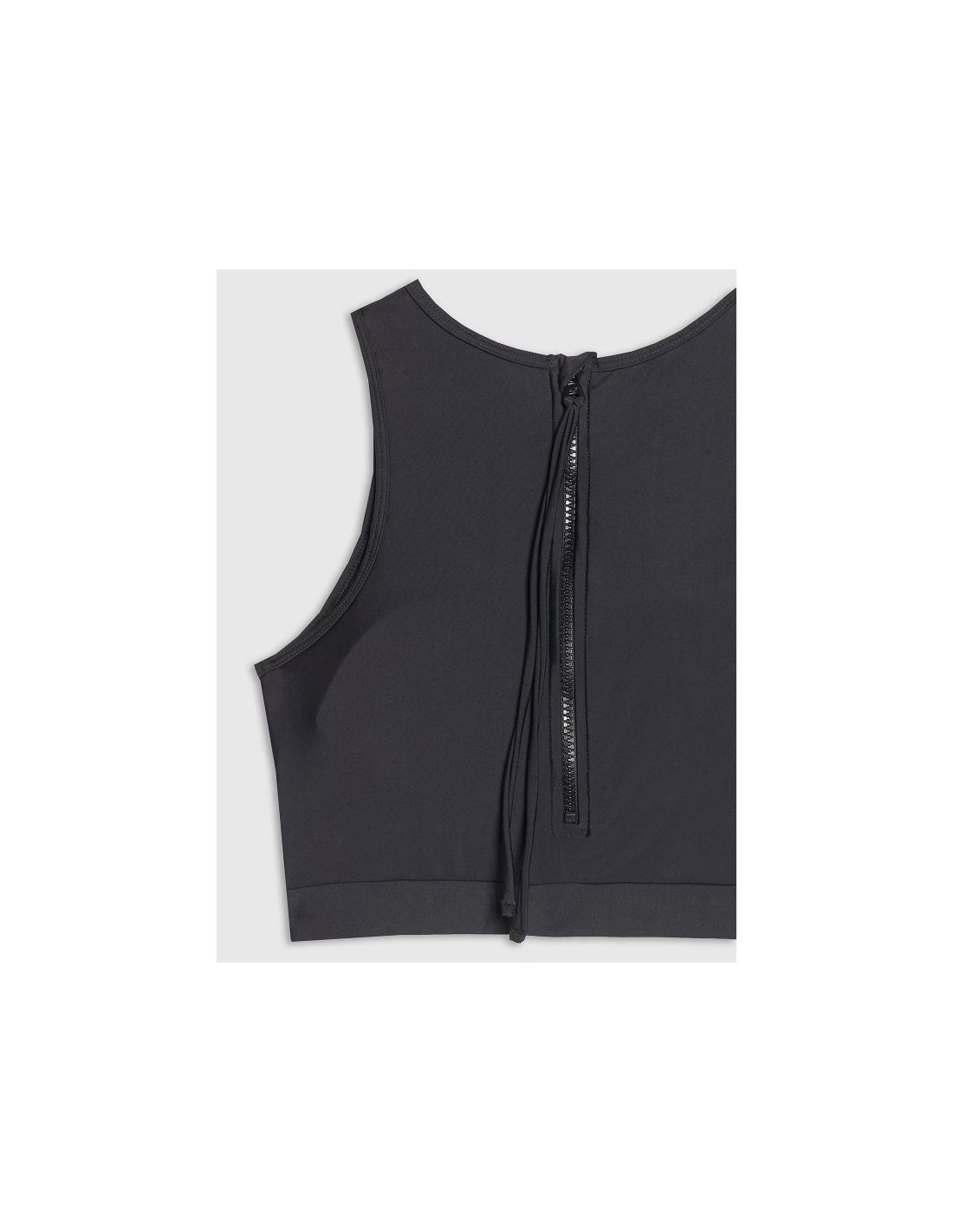 Women's sporty bikini top – comfort, style and freedom of movement This women's bikini top combines sporty style and functionality, perfect for summer days, beach time, physical activity, and recreational swimming . It provides comfort and freedom of movement , whether you're relaxing on the beach or on the go. This swim top is made of durable synthetic material with 15% elastane , ensuring flexibility, durability, and a perfect fit. The fabric is water- and sun-resistant and easy to care for. The quick-drying fibers used effectively wick moisture away from the body, increasing comfort while wearing and after getting out of the water. The sporty racerback design with a high neckline and a back zipper makes it easy to put on and ensures stability. A wide underbust band provides support, and the cups with removable pads allow you to adjust the level of support and shape to your preferences. Product features – women's bikini top : Women's sports swim top - perfect for the pool and beach Available sizes from XS to XL – to fit a variety of body types Flexible material with 15% elastane – perfect fit and comfort Quick-drying fabric – comfort after bathing and quick moisture wicking Back zipper – easy to put on and a sporty touch Wide band under the bust – additional support and stabilization Removable cup inserts – personalize support Universal, solid colors – easy to match with any bikini bottoms Boxer cut – maximum freedom of movement and a sporty look