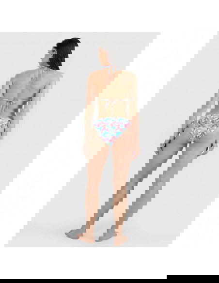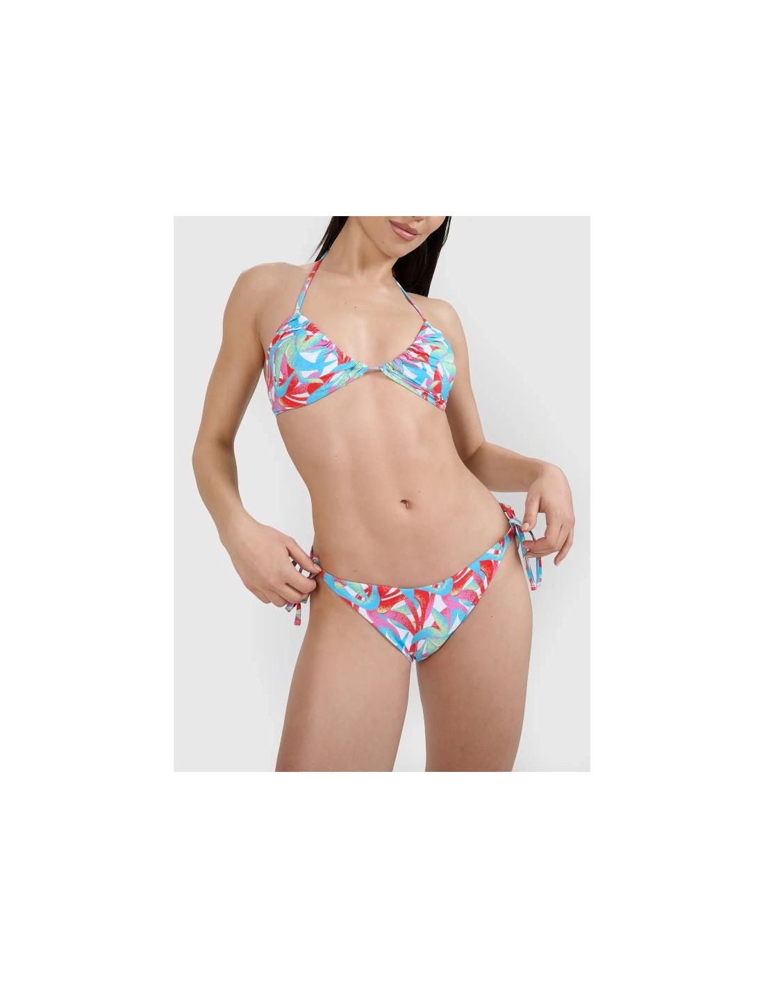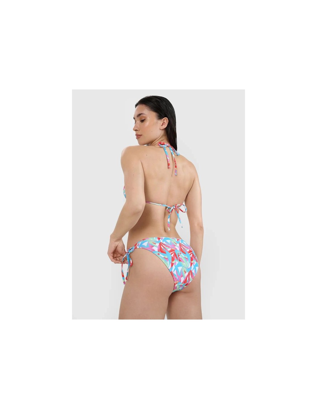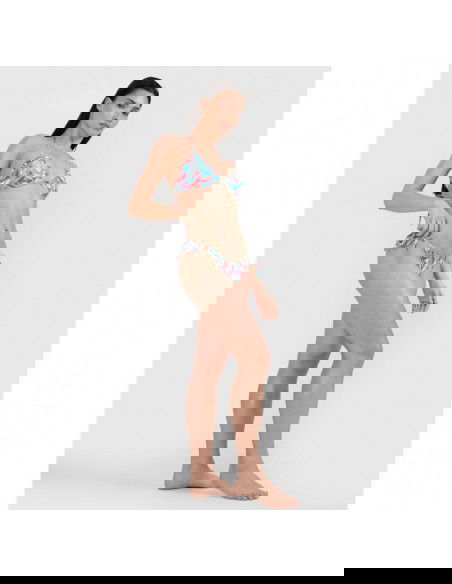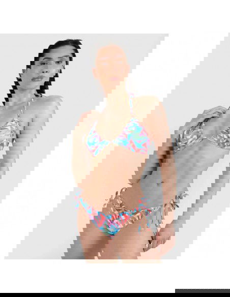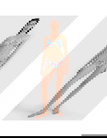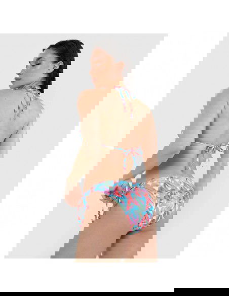 Women's bikini bottom with drawstrings - comfort and style for summer These women's bikini bottoms are designed for summer activities—both beach lounging and recreational swimming. Their classic mid-rise cut with side ties ensures comfort, freedom of movement, and a customizable fit. This model is made of durable, easy-care synthetic material . The addition of 15% elastane makes the fabric flexible, adapts to the body, and ensures comfort. A delicate lining protects and provides coverage, while quick-drying fibers effectively wick moisture away from the body. The whole is complemented by an allover print , which gives the whole thing a modern and fashionable look. Product features: Sizes XS–XL – wide range of fits for different body types Stylish cut – the lower part of the outfit has a classic, comfortable cut 15% elastane – elasticity and body fit Allover print – a fashionable, eye-catching pattern Delicate lining – increases comfort and coverage Mid-rise – a timeless cut that accentuates the silhouette Side tie straps – adjustable circumference and stylish finish Quick-drying material – comfortable to wear even after contact with water