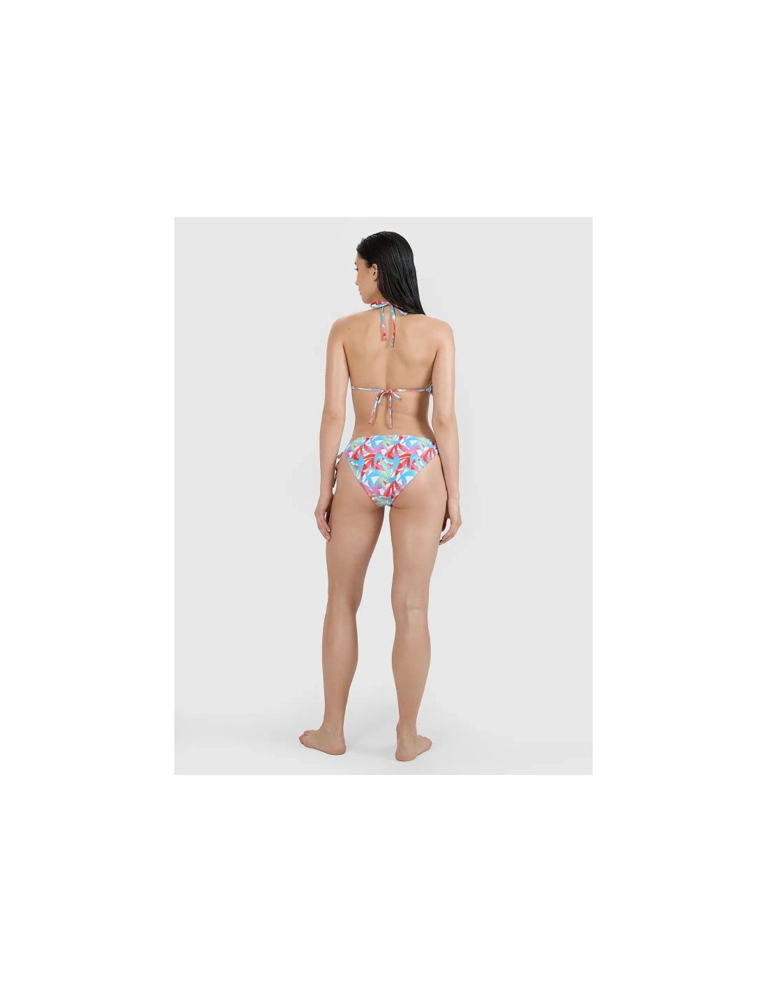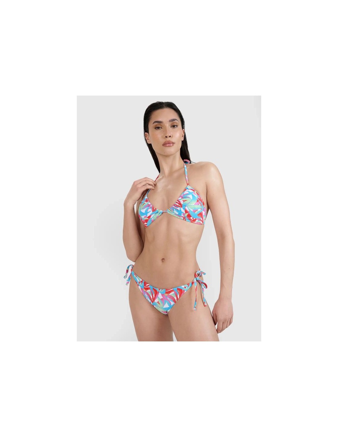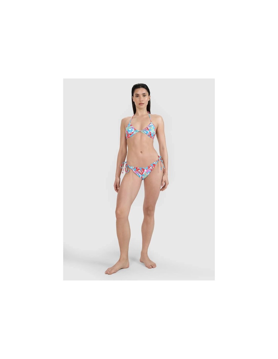 Women's bikini bottom with drawstrings - comfort and style for summer These women's bikini bottoms are designed for summer activities—both beach lounging and recreational swimming. Their classic mid-rise cut with side ties ensures comfort, freedom of movement, and a customizable fit. This model is made of durable, easy-care synthetic material . The addition of 15% elastane makes the fabric flexible, adapts to the body, and ensures comfort. A delicate lining protects and provides coverage, while quick-drying fibers effectively wick moisture away from the body. The whole is complemented by an allover print , which gives the whole thing a modern and fashionable look. Product features: Sizes XS–XL – wide range of fits for different body types Stylish cut – the lower part of the outfit has a classic, comfortable cut 15% elastane – elasticity and body fit Allover print – a fashionable, eye-catching pattern Delicate lining – increases comfort and coverage Mid-rise – a timeless cut that accentuates the silhouette Side tie straps – adjustable circumference and stylish finish Quick-drying material – comfortable to wear even after contact with water