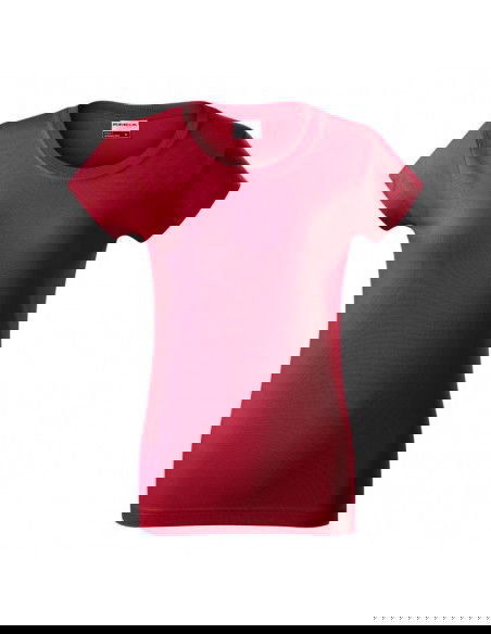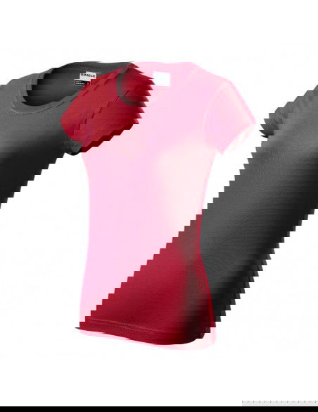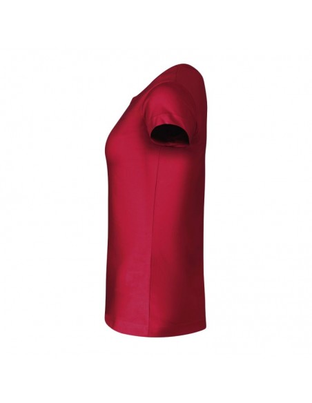 Single Jersey, 100% pre-shrunk cotton pre-shrunk cotton resistant to higher temperatures, washing temperature up to 95 °C (white) and 60 °C (colour), fitted cut with side seams, neckline trim made of 1:1 rib knit, reinforcing seam on shoulders, very short sleeves, Product available in two versions: with or without a brand label in the side seam (see colour chart). Option with label only while stocks last.