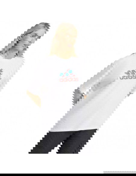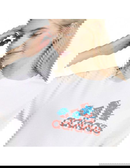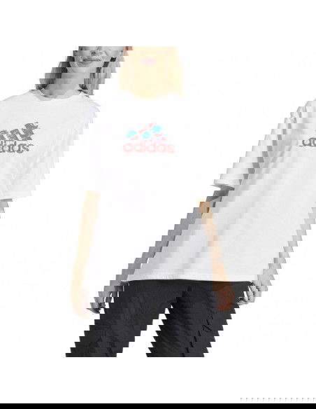Women's T-shirt adidas Flower Pack Badge of Sport white IT1421 Women's T-shirt adidas is a guarantee of everyday comfort and a stylish look. Cotton jersey ensures natural, free breathing. Standard cut ensures freedom of movement. Rounded neckline with delicate elastic. Large logo with floral graphics. Material: 100% cotton