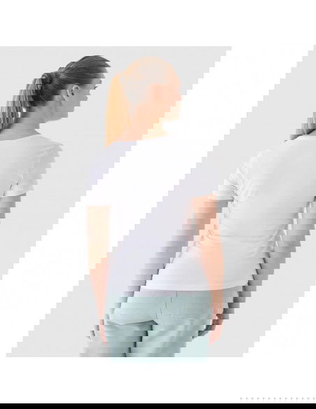 This women's printed T-shirt , with its 180 gsm weight, is soft to the touch and drapes well. It's non-sheer and provides durability and comfort for year-round wear. The 4F women's T-shirt is made of 95% cotton, making it soft, durable, and pleasant to the touch. Thanks to the addition of 5% elastane, it's stretchy and fits comfortably. The crew neckline is finished with a subtle ribbed trim. The "4F" print is visible on the front. weight: 180 gsm size range: XS-XXL cut: slim, which adapts to the silhouette made of 95% cotton, making it soft, durable and pleasant to the touch stretchy material thanks to the addition of elastane (5%) uniform colors that match many styles soft-touch single jersey fabric with a smooth surface round neckline with light ribbed trim "4F" print on the front Main material: Cotton 95%, Elastane 5%