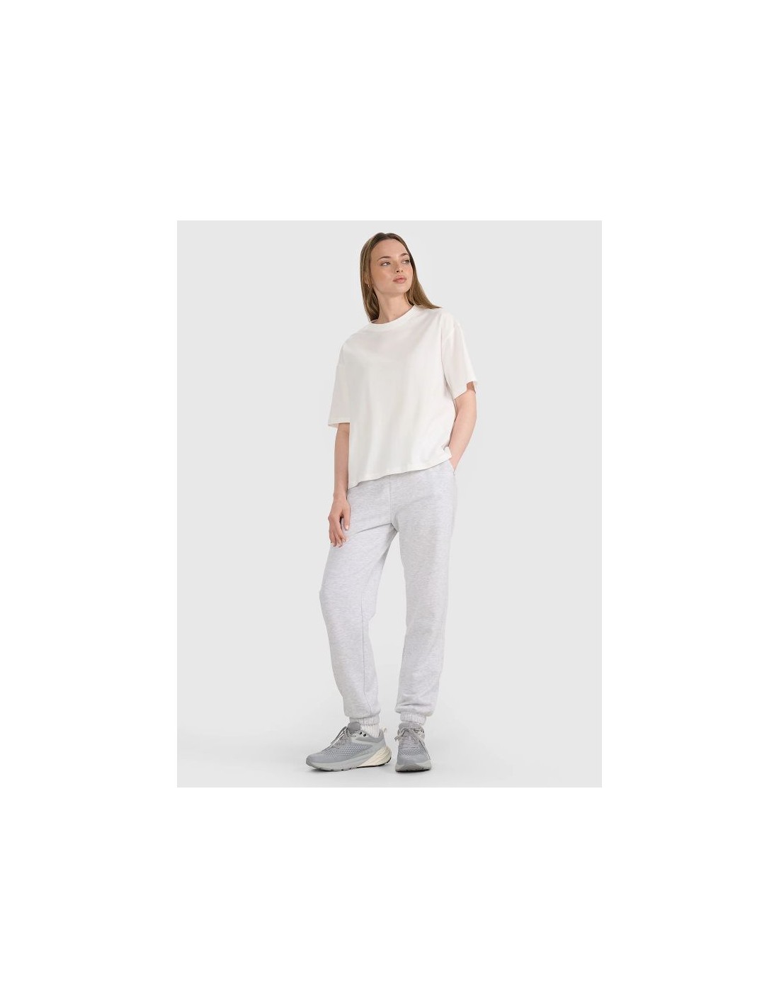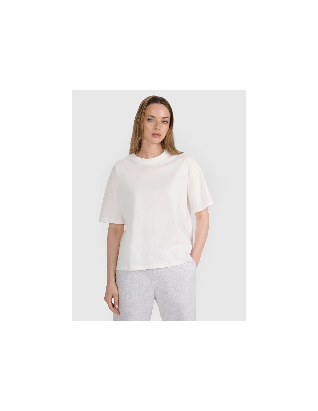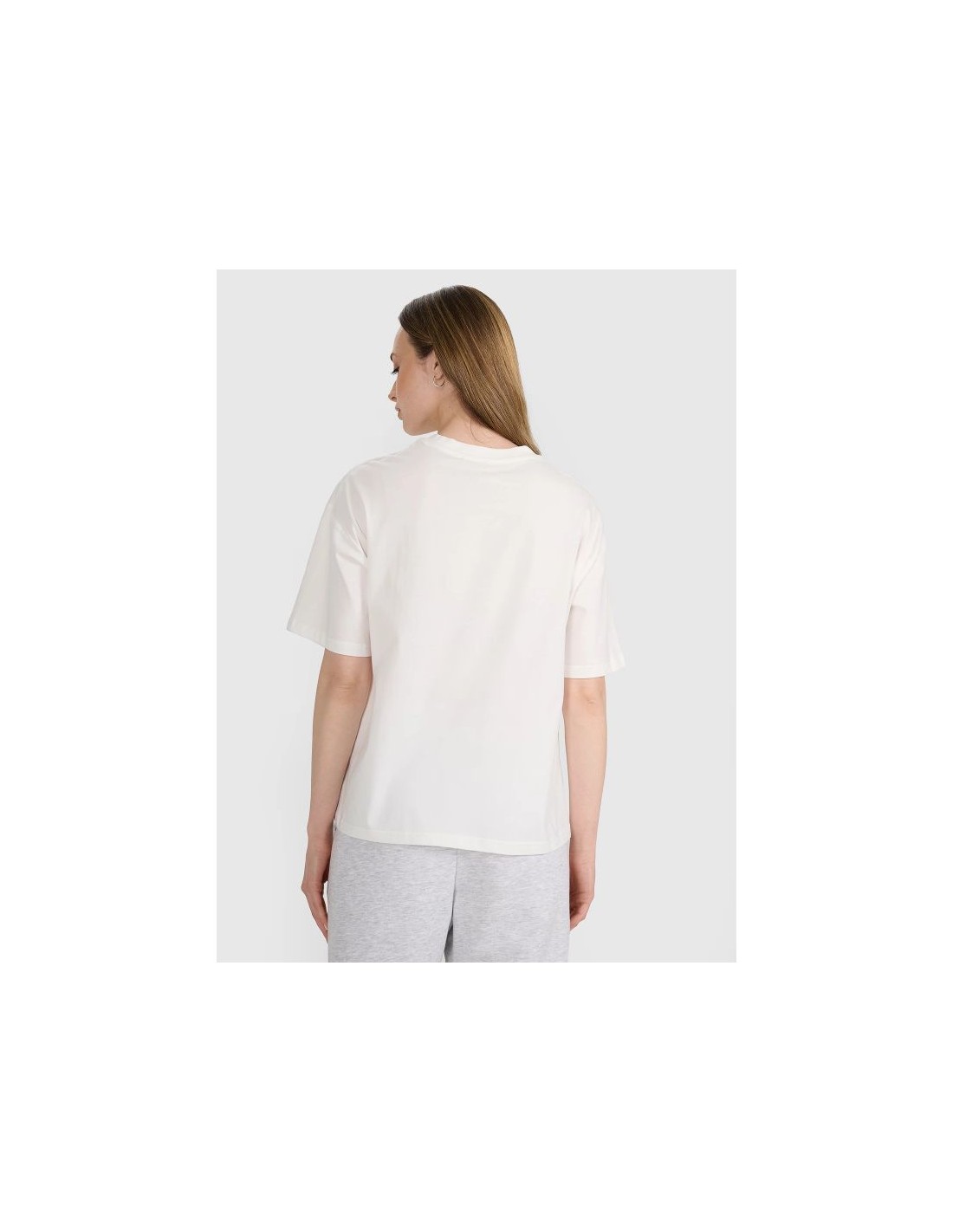 4F women's oversize T-shirt with print - comfort, style and cotton lightness This women's printed T-shirt combines comfort, casual style, and everyday functionality. It works well with both casual and sporty styles , offering all-day comfort – regardless of the occasion. Key product features Oversized cut – loose fit ensures complete freedom of movement and a fashionable, relaxed look Lowered shoulder line – emphasizes the casual character and gives the silhouette a modern looseness 180 gsm weight – light and airy fabric that drapes well, is not transparent and works well all year round 100% cotton – a natural, breathable material that is soft, durable and pleasant to the touch Single jersey – a knit fabric with a smooth, elastic structure ensuring comfort of wearing Allover print – a pattern covering the entire surface of the T-shirt, which makes it stand out from the classic models Crew neck with light ribbed detailing – a soft finish for added comfort and durability This 4F oversize women's printed T-shirt is the perfect choice for warmer days or a light workout. It combines natural breathability , a fashionable look , and a comfortable fit that flatters a variety of body types.