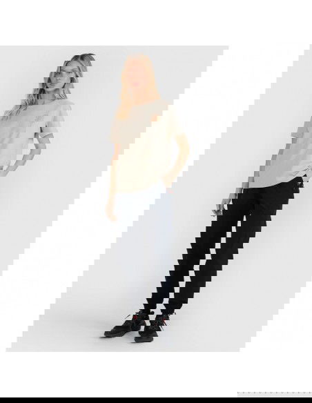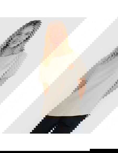 Women's Everyday Pace T-shirt – oversized, comfortable and 100% cotton This women's T-shirt combines a loose, oversized fit with soft single jersey fabric that drapes beautifully and provides complete comfort. It's a perfect choice for both everyday casual and sporty styles . With a weight of 160 gsm , the material is lightweight yet non-transparent , while maintaining its durability and form year-round. Made of 100% cotton , it guarantees softness , a pleasant touch , and breathability . The classic round neckline with slight ribbed detailing gives the T-shirt a timeless character, while the "Everyday Pace" print on the front subtly highlights the sporty lifestyle style. CHARACTERISTICS: Weight: 160 gsm – light, durable, all-year-round Sizes: S–XXL – wide range of fits Oversize cut – loose, casual, fashionable Material: 100% cotton – soft, durable, breathable Single jersey fabric – smooth, flexible, comfortable Round neckline with light ribbed detailing – classic and comfortable Uniform colors – universal in styling "Everyday Pace" print – a fashionable, minimalist accent