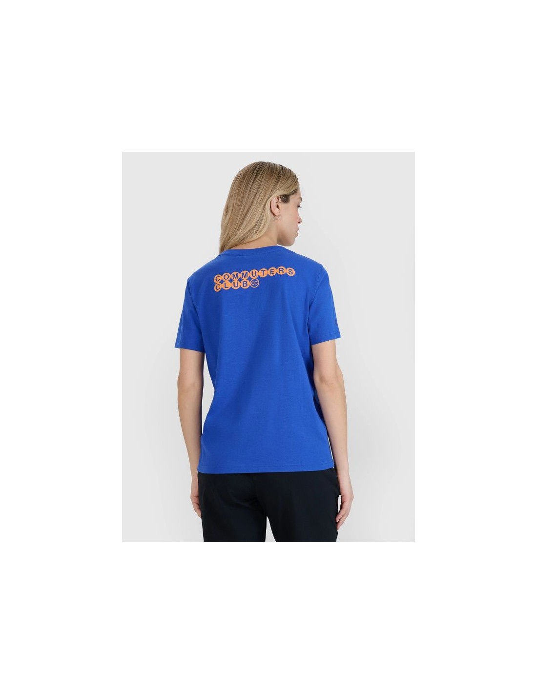 4F Women's T-shirt with Print on the Back – Commuters Club The 4F women's T-shirt combines comfort and modern style. Its oversized cut loosely fits the body, ensuring freedom of movement and all-day comfort. Made of 100% cotton , it's soft, durable, and pleasant to the touch. The single jersey fabric gives the T-shirt a smooth finish, making it a perfect complement to casual and sporty outfits. The standard hip-length, round neckline with slight ribbed detailing and a "Commuters Club" print on the back add a fashionable touch to the T-shirt. Key features: Size range: XS–XXL Oversize cut – loose and comfortable fit Material: 100% cotton Soft-touch single jersey fabric Round neckline with light ribbed detail Solid colors – easy to style "Commuters Club" print on the back Standard length reaching to the hips