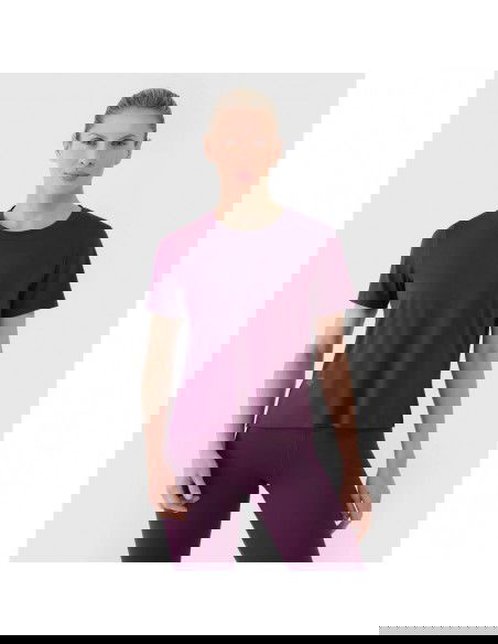 The 4F women's training top is the perfect choice for women seeking comfort, support, and functionality during their workouts. Thanks to modern materials, it perfectly adapts to the body, ensuring complete freedom of movement and comfort during intense workouts. Product Features: Oversize cut: Loosely fits the body, providing comfort and freedom, perfect for various types of training. Made of Recycled Material: 90% recycled polyester – you care about the environment by choosing this T-shirt, which has certificates confirming its origin. Additional Elastane (10%): The material is stretchy, so the T-shirt fits comfortably on the body without restricting movement. 4FDry technology: Quick-drying fibers help wick moisture away from the body, keeping you comfortable and dry during exercise. Side slits: For even greater freedom of movement, provide better ventilation and comfort. Round Neck: A classic cut with detail that complements a variety of styles. The 4F women's training top is not only a fashionable piece of sportswear, but also a functional choice for any physical activity. Thanks to its properties, it provides comfort and support, regardless of the intensity of your workout. Women's Training Top – Comfort and Support at Every Stage of Training
