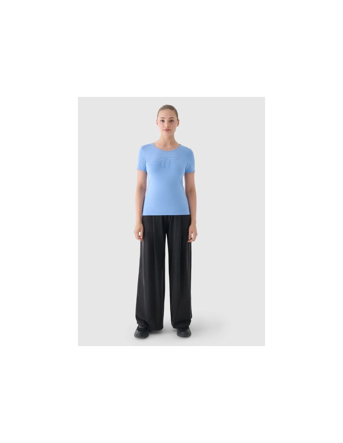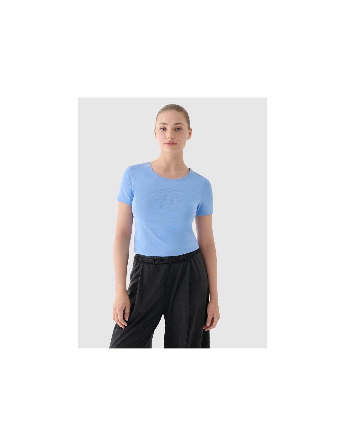 This women's printed T-shirt , with its 180 gsm weight, is soft to the touch and drapes well. It's non-sheer and provides durability and comfort for year-round wear. The 4F women's T-shirt is made of 95% cotton, making it soft, durable, and pleasant to the touch. Thanks to the addition of 5% elastane, it's stretchy and fits comfortably. The crew neckline is finished with a subtle ribbed trim. The "4F" print is visible on the front. weight: 180 gsm size range: XS-XXL cut: slim, which adapts to the silhouette made of 95% cotton, making it soft, durable and pleasant to the touch stretchy material thanks to the addition of elastane (5%) uniform colors that match many styles soft-touch single jersey fabric with a smooth surface round neckline with light ribbed trim "4F" print on the front Main material: Cotton 95%, Elastane 5%