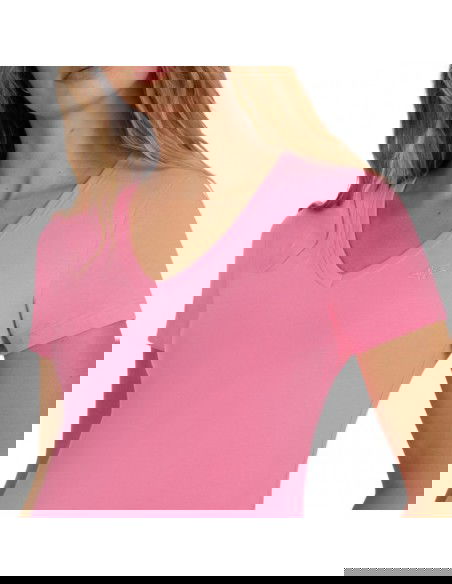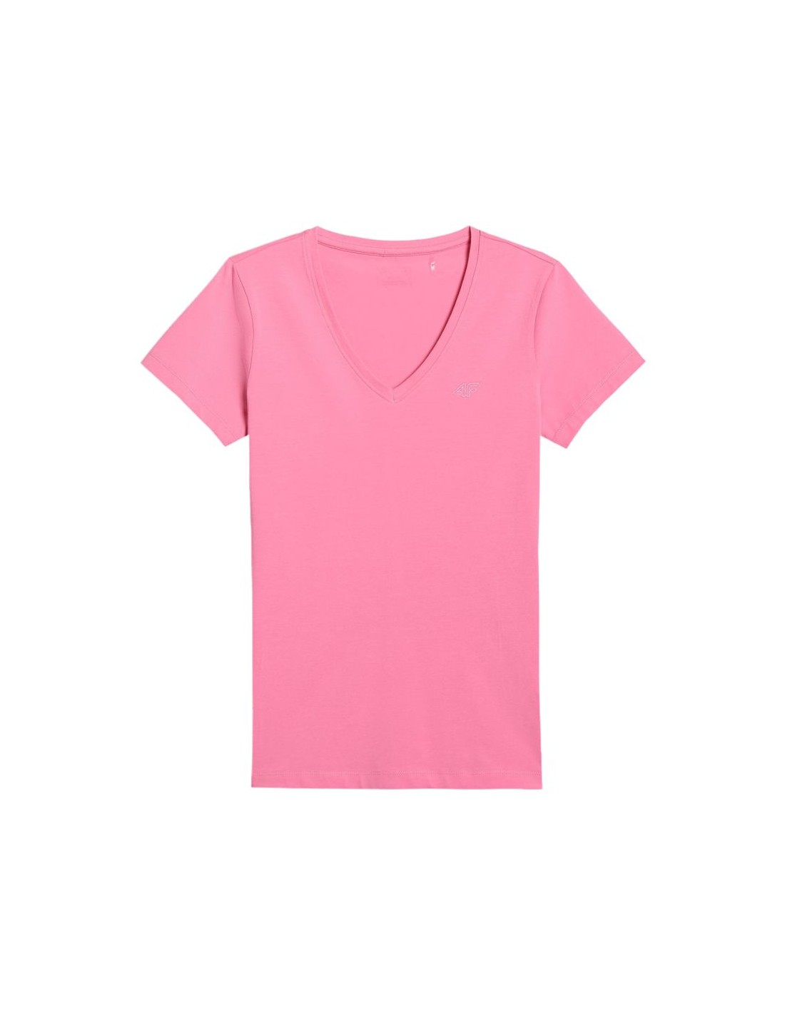 4F Women's T-shirt F2969 Pink 4FWAW25TTSHF2969 54S This 4F women's T-shirt, in the spirit of minimalism, is an indispensable part of everyday styling. Technical data: · Main material: 95% cotton, 5% elastane · Weight: 180 gsm · Cut: slim, which adapts to the figure · Made mostly of cotton · Stretchy material thanks to the addition of elastane · Solid colors to match many styles · Soft-touch single jersey fabric with a smooth surface · V-neck