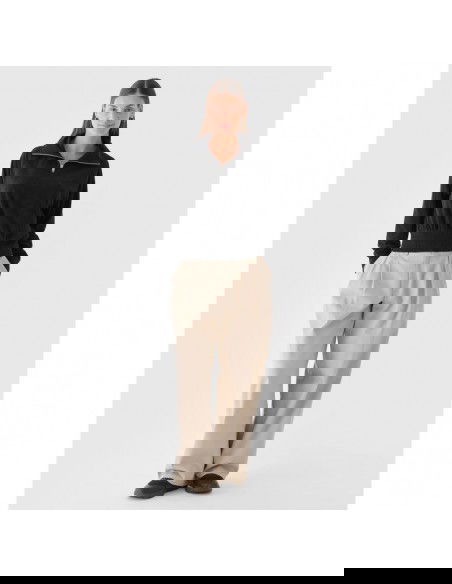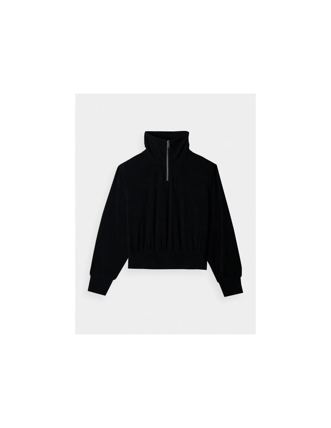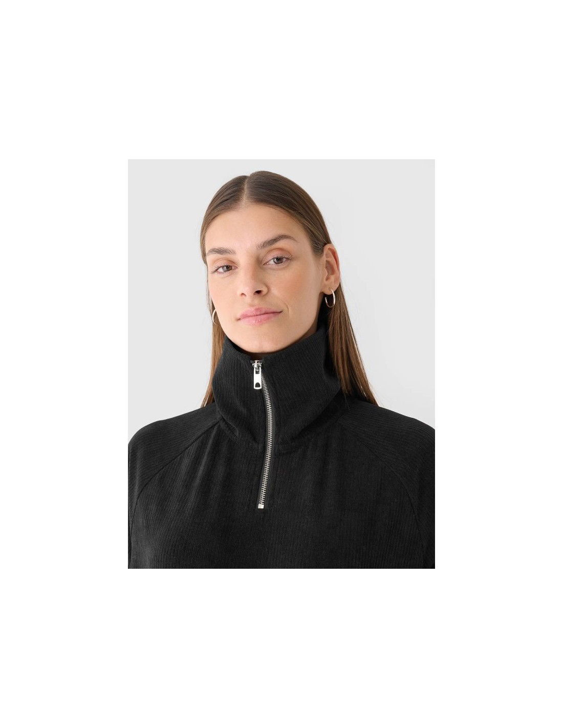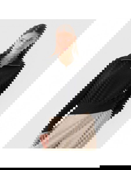This women's open-front sweatshirt is made of velour with a subtle sheen. Velour is distinguished by its soft, delicate surface. It also provides high elasticity and flexibility, and drapes very well. Thanks to the addition of 5% elastane, it stretches and fits comfortably. The stand-up collar is zippered. Ribbed cuffs and hem. Classic fit without pockets. It slips on over the head. Raglan sleeves allow for unrestricted movement. weight: 265 gsm size range: XS-XL unlined interior cut: oversize, which fits loosely on the body and provides freedom standard cut reaching to the hips made of velvet with a delicate shine, characterized by a soft, delicate to the touch surface stretchy material thanks to the addition of elastane (5%) uniform colors that match many styles stand-up collar with zipper ribbed cuffs without pockets put on over the head raglan sleeves do not restrict movement bottom with drawstring Main material: Polyester 95%, Elastane 5%