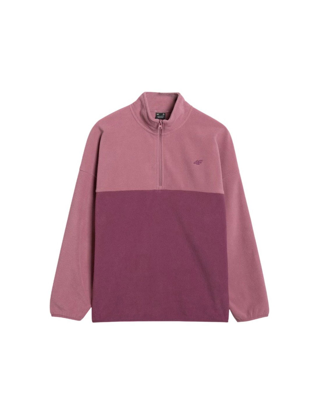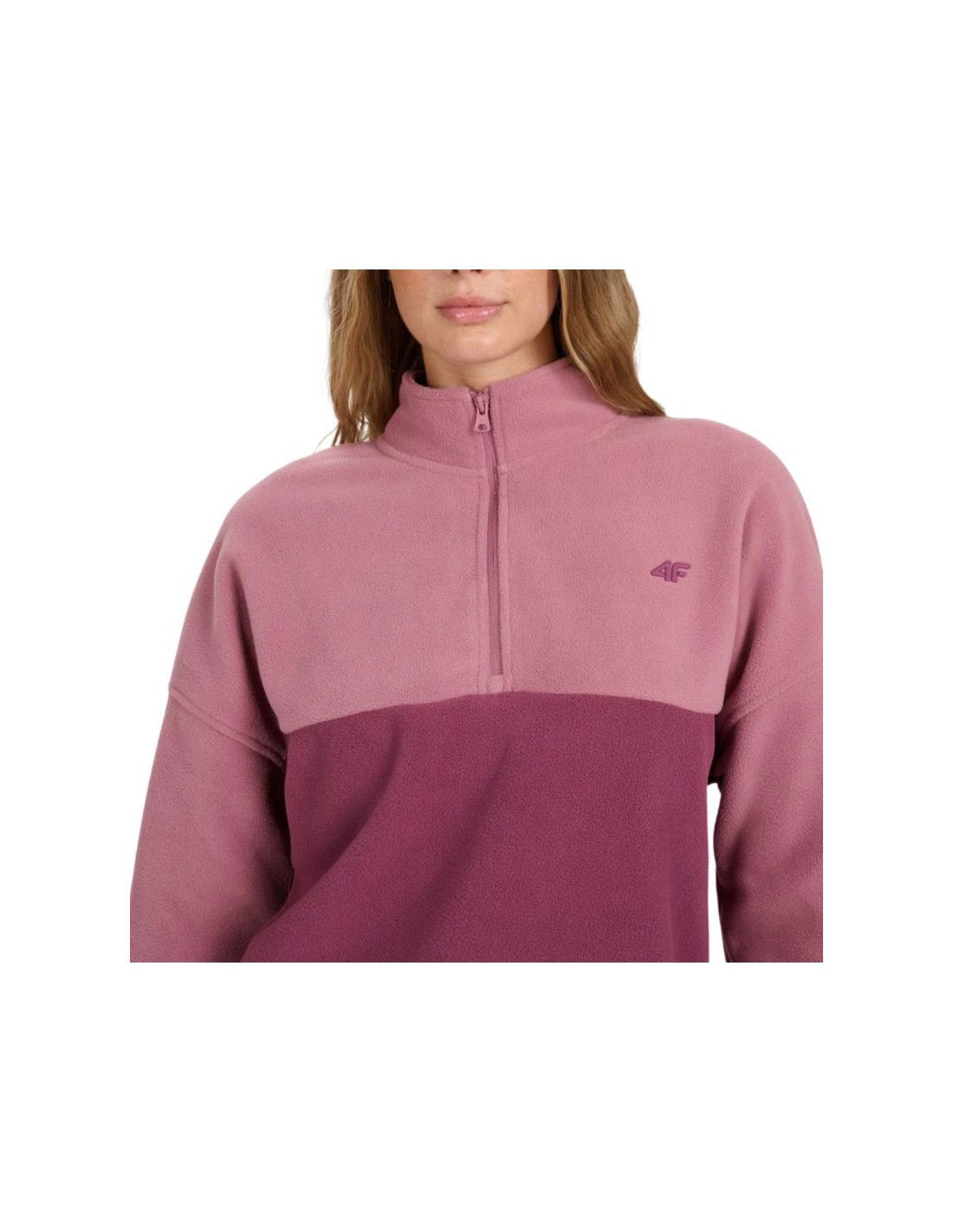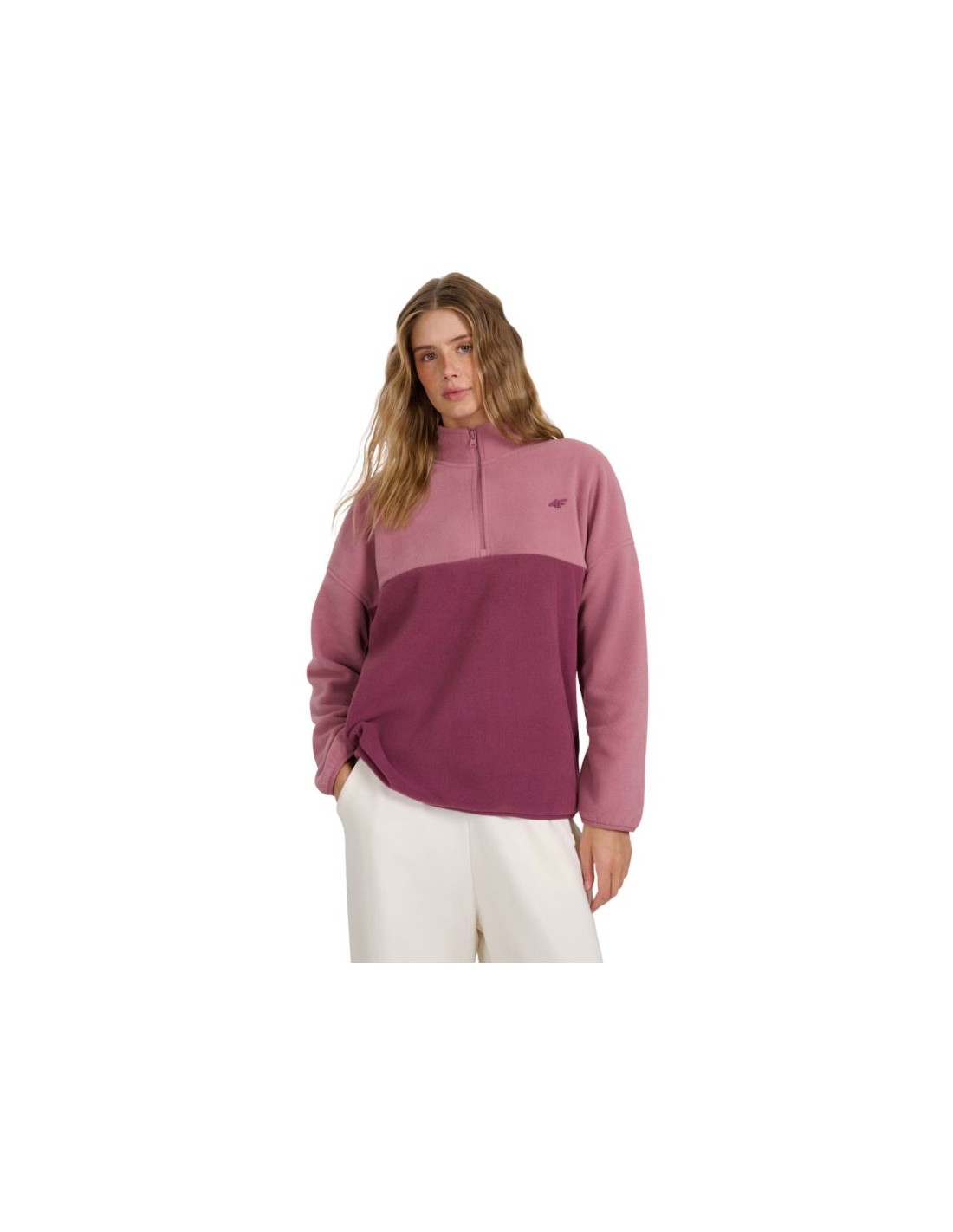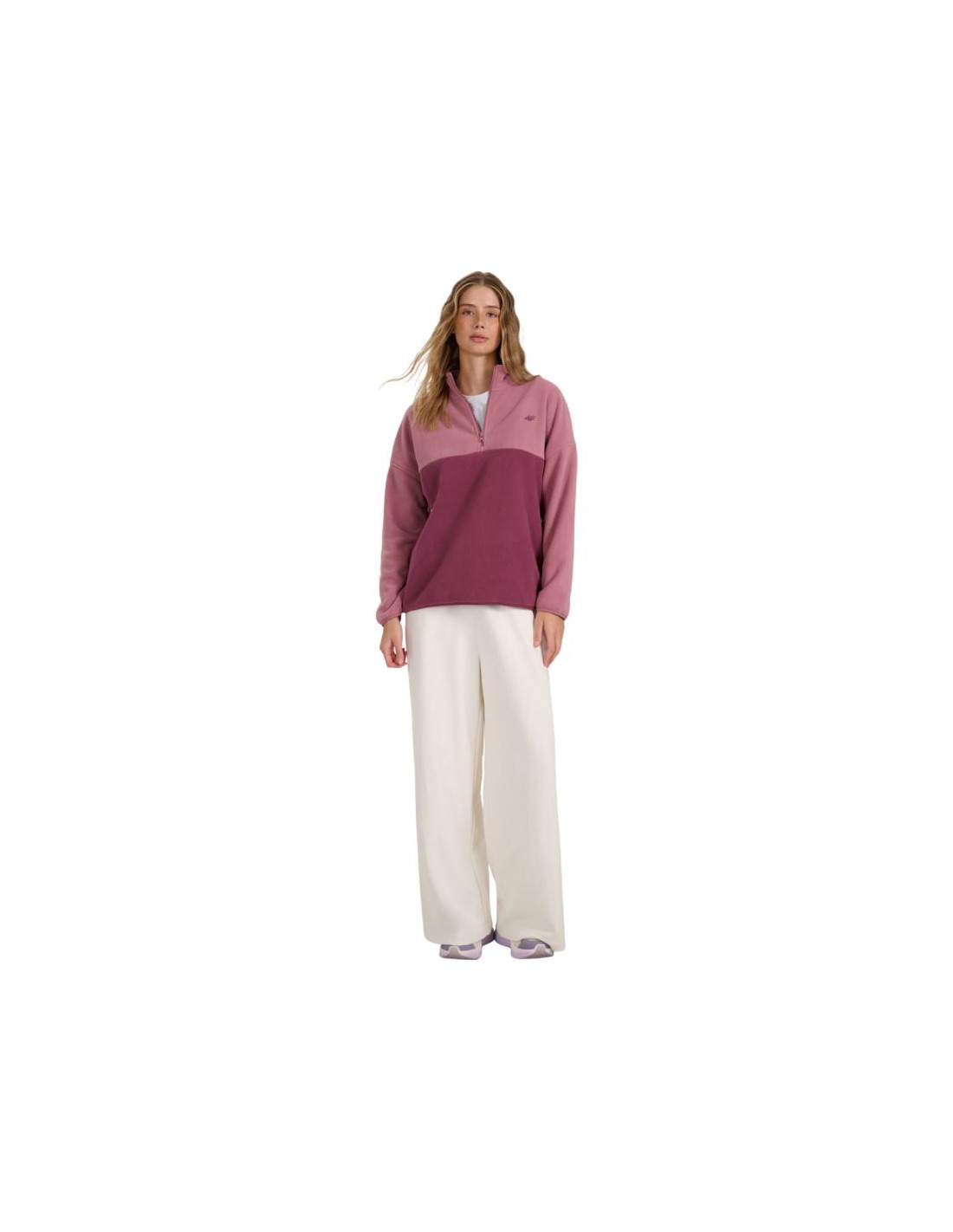 Fleece sweatshirt 4F W 4FWAW25TFLEF421 Properties: Women's fleece sweatshirt 4F The 4F women's fleece is perfect for various activities. Main material: 100% polyester · Additional material: 60% cotton, 40% polyester · Inner microfleece - provides warmth and softness in contact with the skin · Regular fit - comfortable fit to the body · Weight 300 gsm - appropriate thickness to guarantee thermal insulation Hip-length cut - classic length for versatility · Made of soft fleece - pleasant to the touch and warm material · Solid colors - styling versatility Stand-up collar with short zipper - neck protection and adjustable cuffs with elastic trim - better fit and comfort No pockets - simplified, classic design · Slips on over the head - easy to put on and aesthetically pleasing · Dropped sleeves - greater freedom of movement and a looser feel