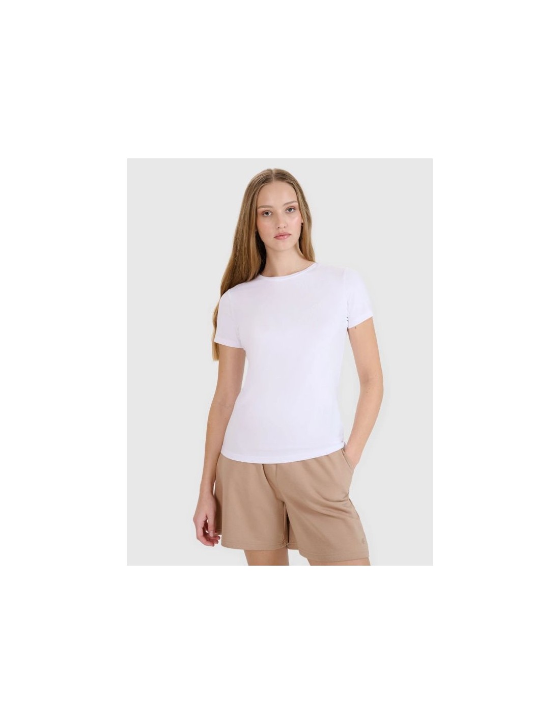 Women's 2-pack 4F T-shirt - comfort and style for every day The 4F women's 2-pack T-shirt is a versatile set of shirts that works well with both casual and sporty outfits. Soft-touch cotton and a fitted cut ensure comfort and freedom of movement all day long. Key features Slim fit – a fitted cut that highlights the figure and does not restrict movement. Single jersey fabric – flexible, smooth structure ensures comfortable wearing. Composition: 95% cotton - soft, breathable and pleasant to the touch fabric with high durability. Round neckline - finished with light ribbed detailing for a better fit. Set of 2 - a practical solution for every day. Universal colors - easy to combine with various styles. Comfort and universal style The 4F T-shirt set is made of soft, smooth cotton for year-round comfort. The classic cut and stretchy fabric ensure a perfect fit, retaining their shape even after repeated washes.