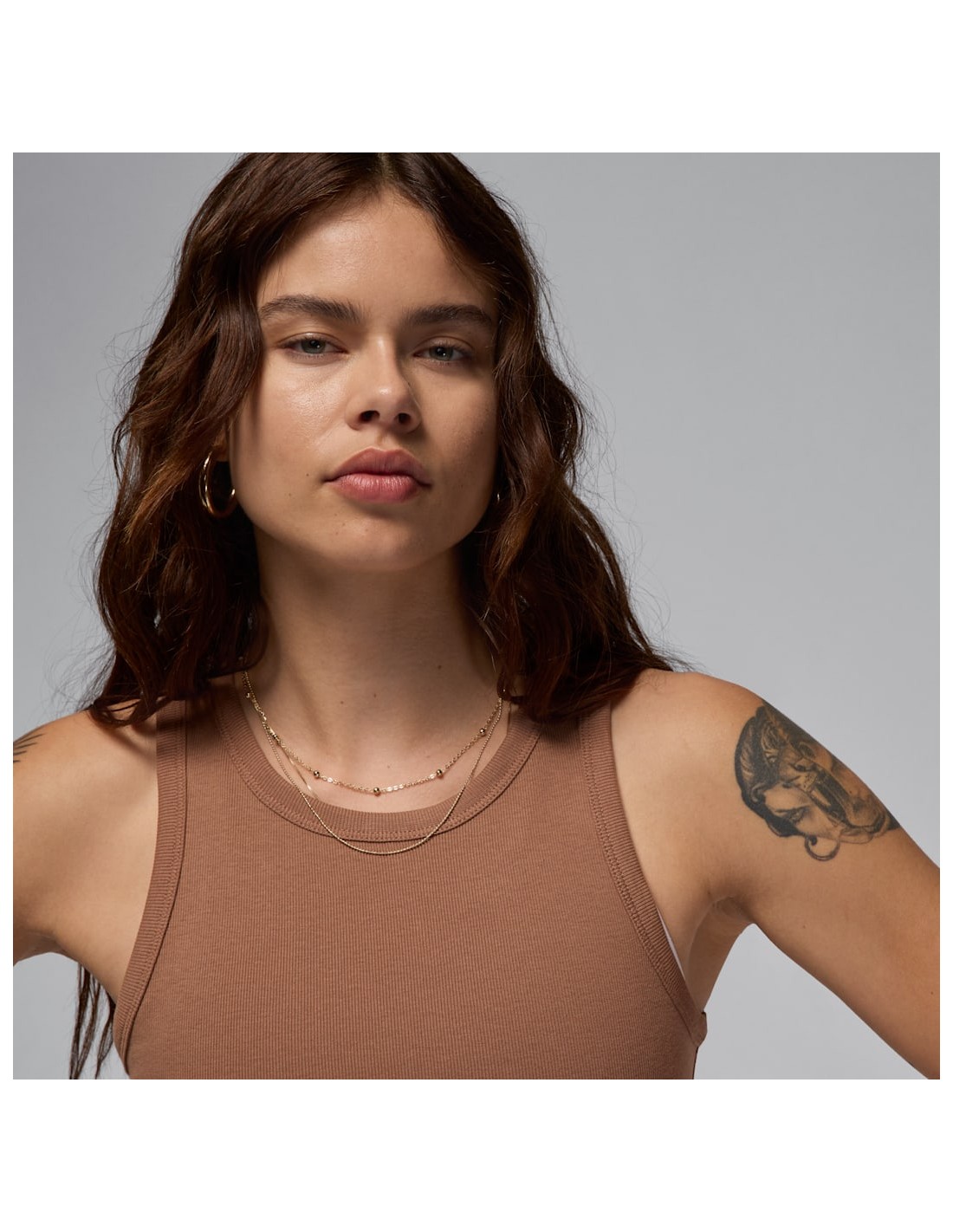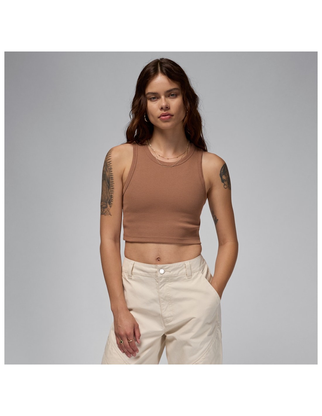 Elevate your workout wardrobe with the Jordan Women's Tank Archaeo Brown. This stylish tank top features a modern design with a flattering fit that will keep you comfortable and looking great during your activities.