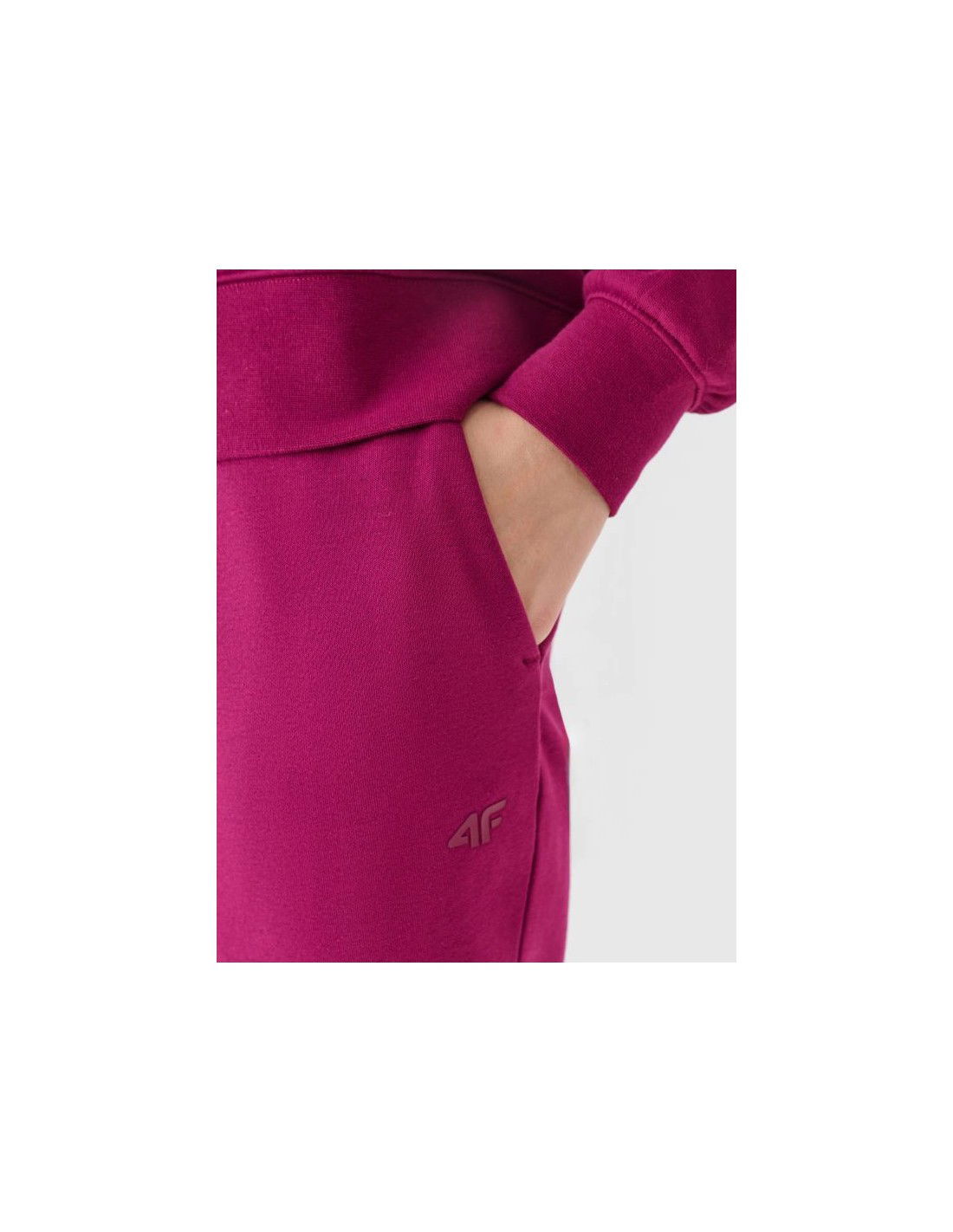 Women's 4F sweatpants – everyday comfort and functionality 4F women's tracksuits are made of 80% cotton , making them soft, durable, and pleasant to the touch. The addition of polyester (20%) ensures the material maintains its shape and is resistant to wear and tear, even for many seasons. The brushed interior provides additional warmth, making them an ideal choice for colder days. There are two open pockets on the sides. An elastic waistband with external drawstring adjustments allows for a personalized fit. Women's sweatpants - FEATURES Weight: 280 gsm Size range: XS-XXL Interior: brushed on one side, provides extra warmth Cut: regular, comfortably fitted to the body Legs: with elastic band Main material: 80% cotton, 20% polyester Additional material: 100% cotton Colors: uniform, suitable for many styles Knitwear: single jersey with a smooth surface, soft to the touch Pockets: 2 open side pockets Waist: elastic with external adjustment with straps