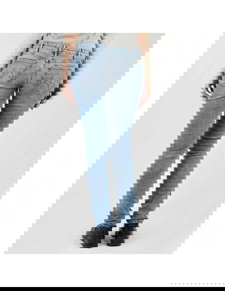 Women's low-rise, tapered-leg jeans. Zipper and Wrangler signature button.