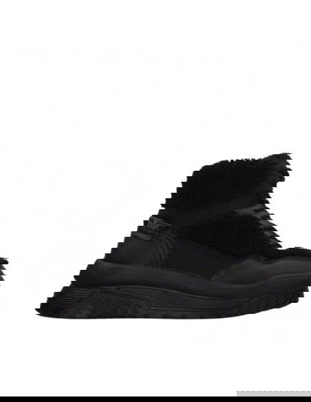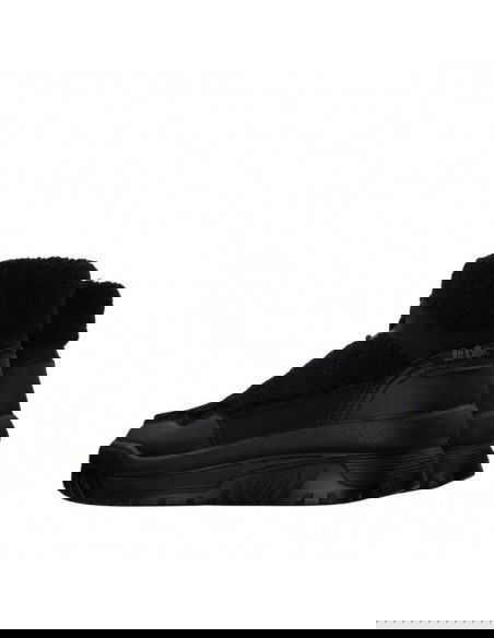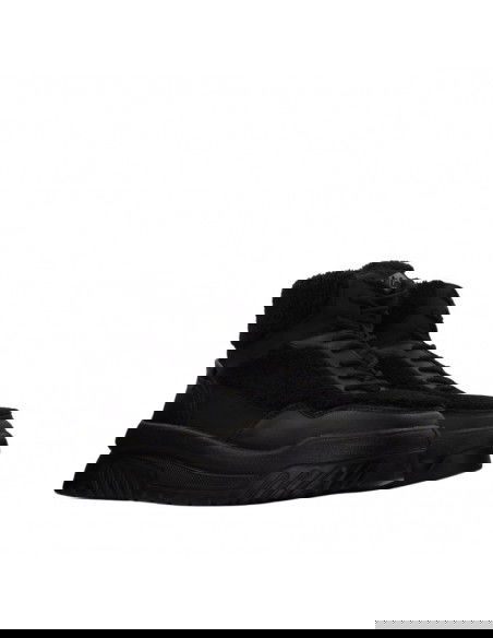 - Upper and collar covered with textile material in the form of fur.