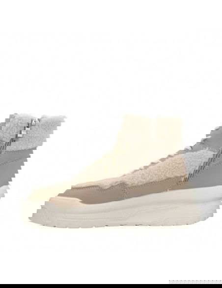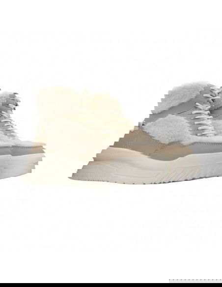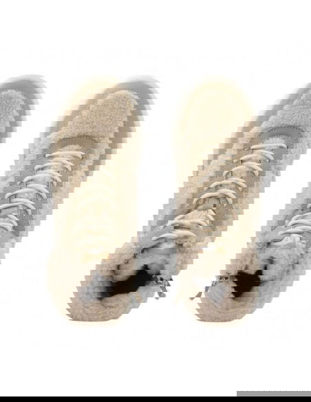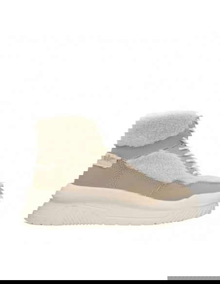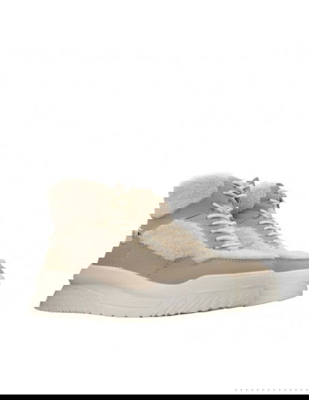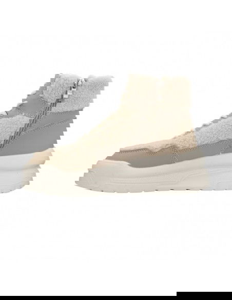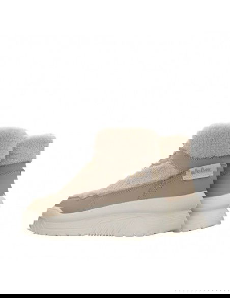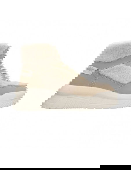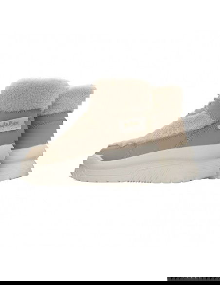 - Upper and collar covered with textile material in the form of fur.