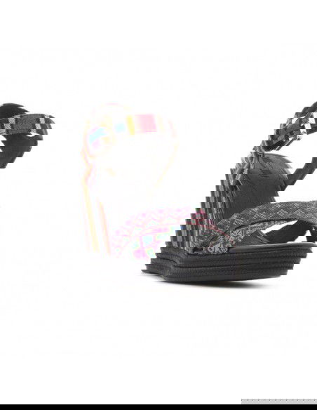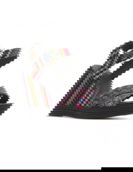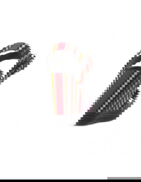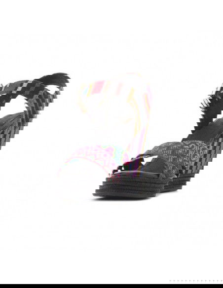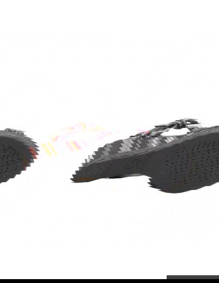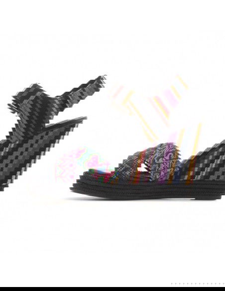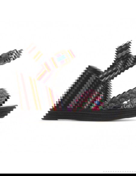 - An additional decoration is a gold buckle that allows the strap around the ankle to be adjusted, and a finish around the sole in the style of a double black braid.