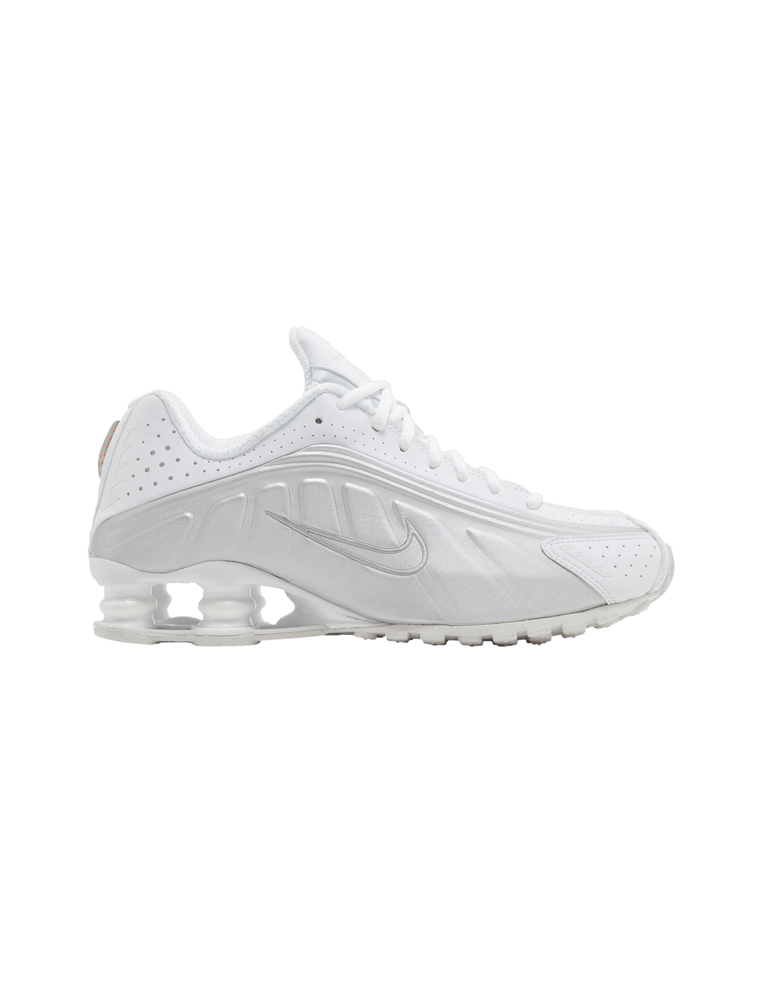 Elevate your style and performance with the Nike Shox R4 White Metallic Silver Women's AR3565101 MBS. These iconic sneakers combine cutting-edge technology with a sleek design to provide you with ultimate comfort and support throughout your day.