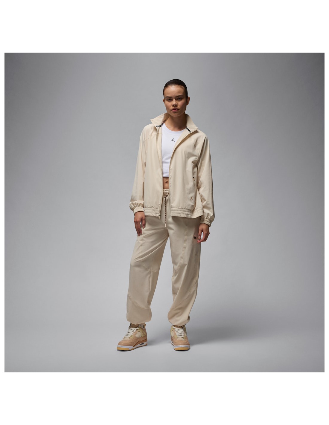 Elevate your sportswear collection with the Jordan Sport Women's DriFIT Woven Jacket in Legend Light Brown and Legend Medium Brown. This stylish and functional jacket is designed to keep you comfortable and looking great during your workouts or casual outings. The lightweight and breathable fabric ensures optimal performance while the trendy colorblock design adds a touch of fashion to your active wardrobe.