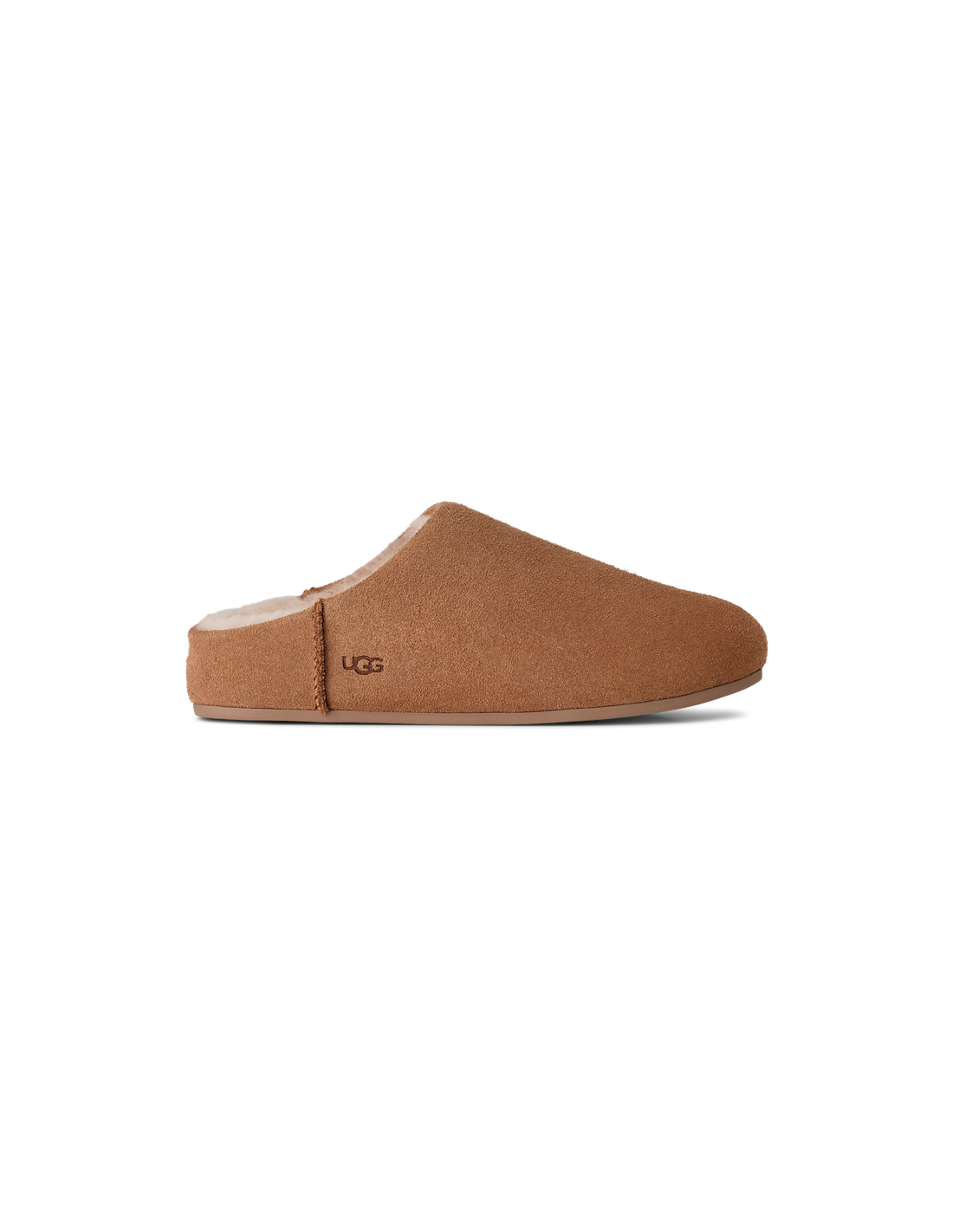 Slip into cozy comfort with the UGG Elea SlipOn Slipper in Chestnut. Crafted from soft suede and lined with plush UGGpure™ wool, these slippers are perfect for lounging around the house or running quick errands. The slip-on design makes them easy to wear, while the durable rubber outsole provides traction and support.