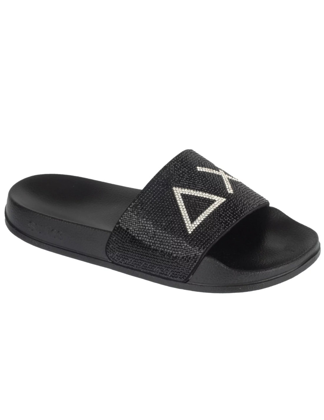 Step into style and comfort with the SUN68 Slippers Strass Logo X3621111. These chic slippers are designed with a touch of glamour, featuring a stunning strass logo detail that adds a hint of sparkle to your everyday look. Made with high-quality materials, these slippers are not only fashionable but also incredibly comfortable, making them the perfect choice for lounging at home or running errands in style.